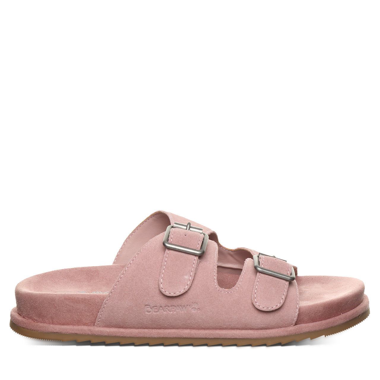 Bearpaw Darcy Women's Comfort Sandals. Experience exceptional comfort and style with the Bearpaw Darcy sandals. These women's sandals feature gorgeous soft suede that hugs the foot and stylish rivets for a touch of glam. The fully adjustable straps and ergonomically molded footbed make them your perfect summer pair.