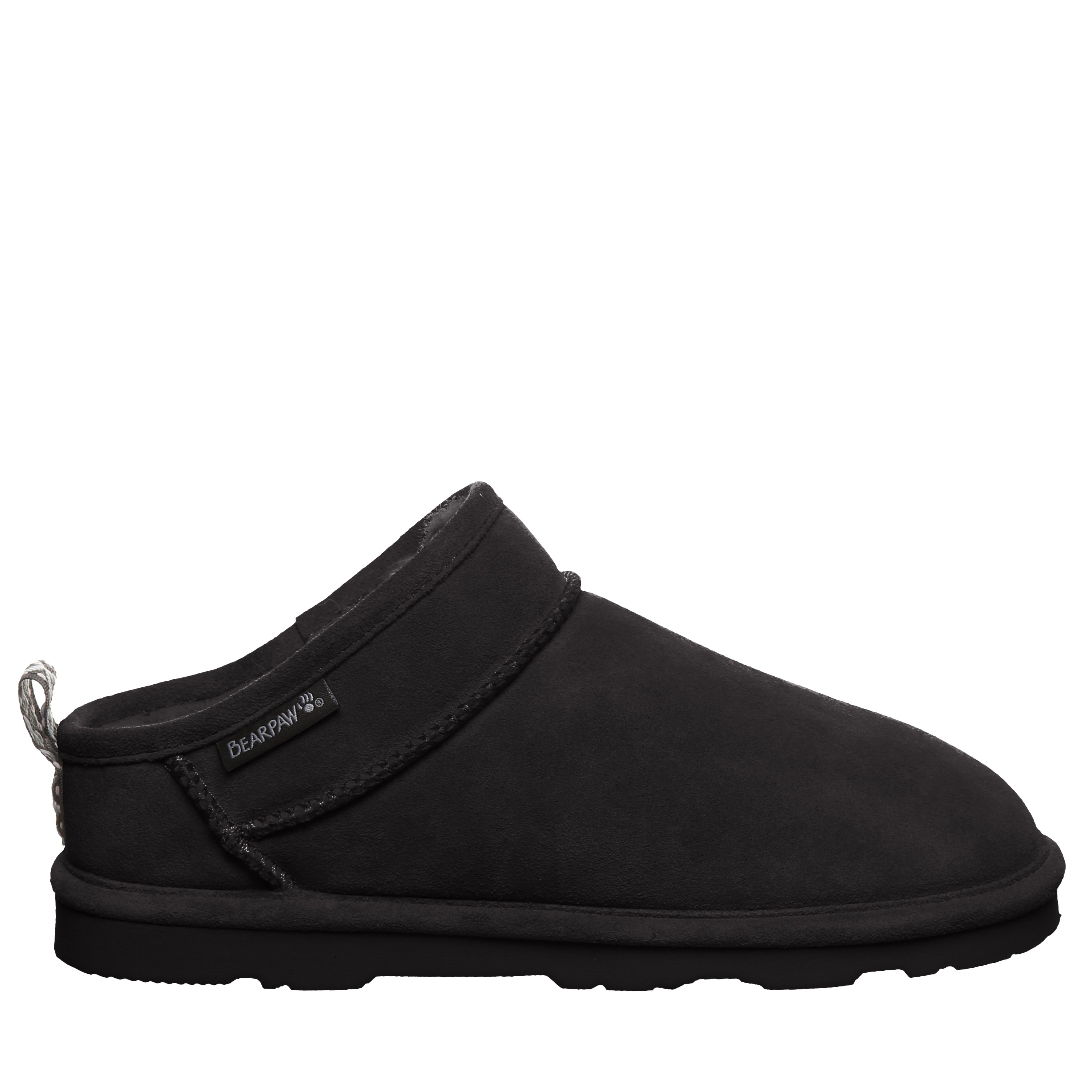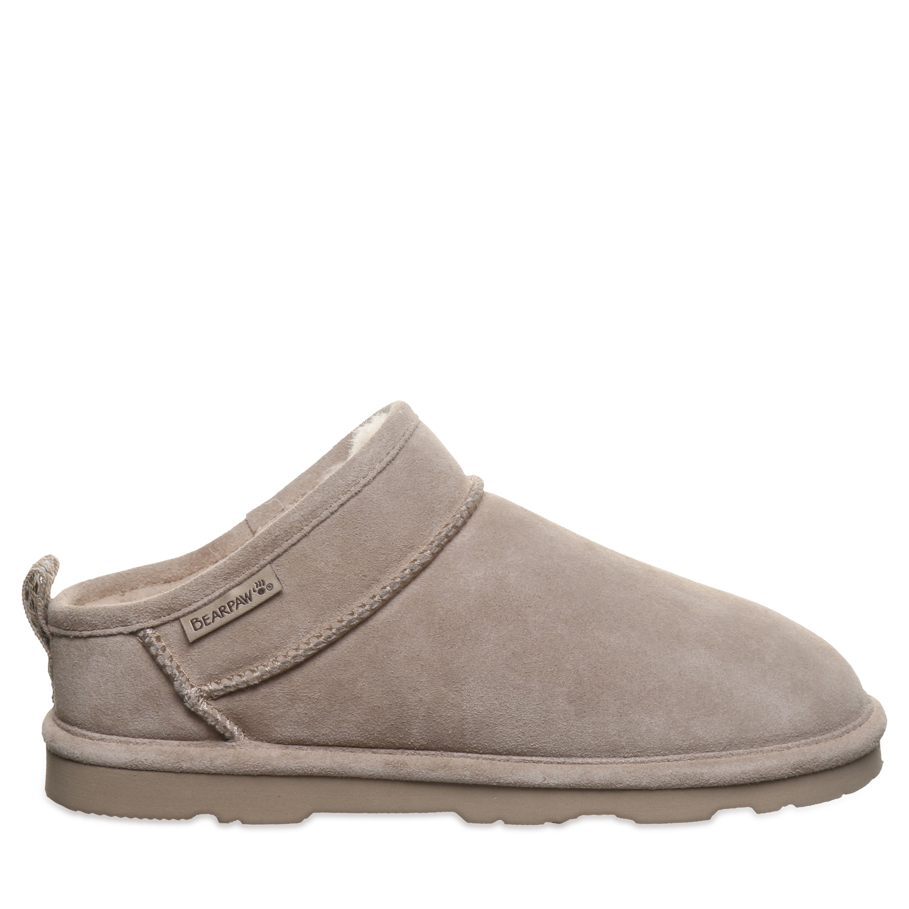 Bearpaw Kam Women's Slippers - 3333W | Cozy Pull-On Comfort SlippersExperience the ultimate in effortless style and comfort with the Bearpaw Kam slippers, always ready by the door for your daily adventures. These slippers blend clean, modern lines with luxurious cozy details, including a plush wool blend lining and a supportive comfort footbed for an ideal fit. Perfect for enjoying a sunset stroll or relaxing at home with your favorite shows, the Kam embodies that 'effortless yet polished' vibe. Enhanced with BearCoat for protection against everyday spills and built on a durable rubber sole, these slippers are designed to keep up with your comfortable, cozy lifestyle from the trusted Bearpaw brand. Features of the Bearpaw Kam Women's Slippers - 3333W | Cozy Pull-On Comfort Slippers