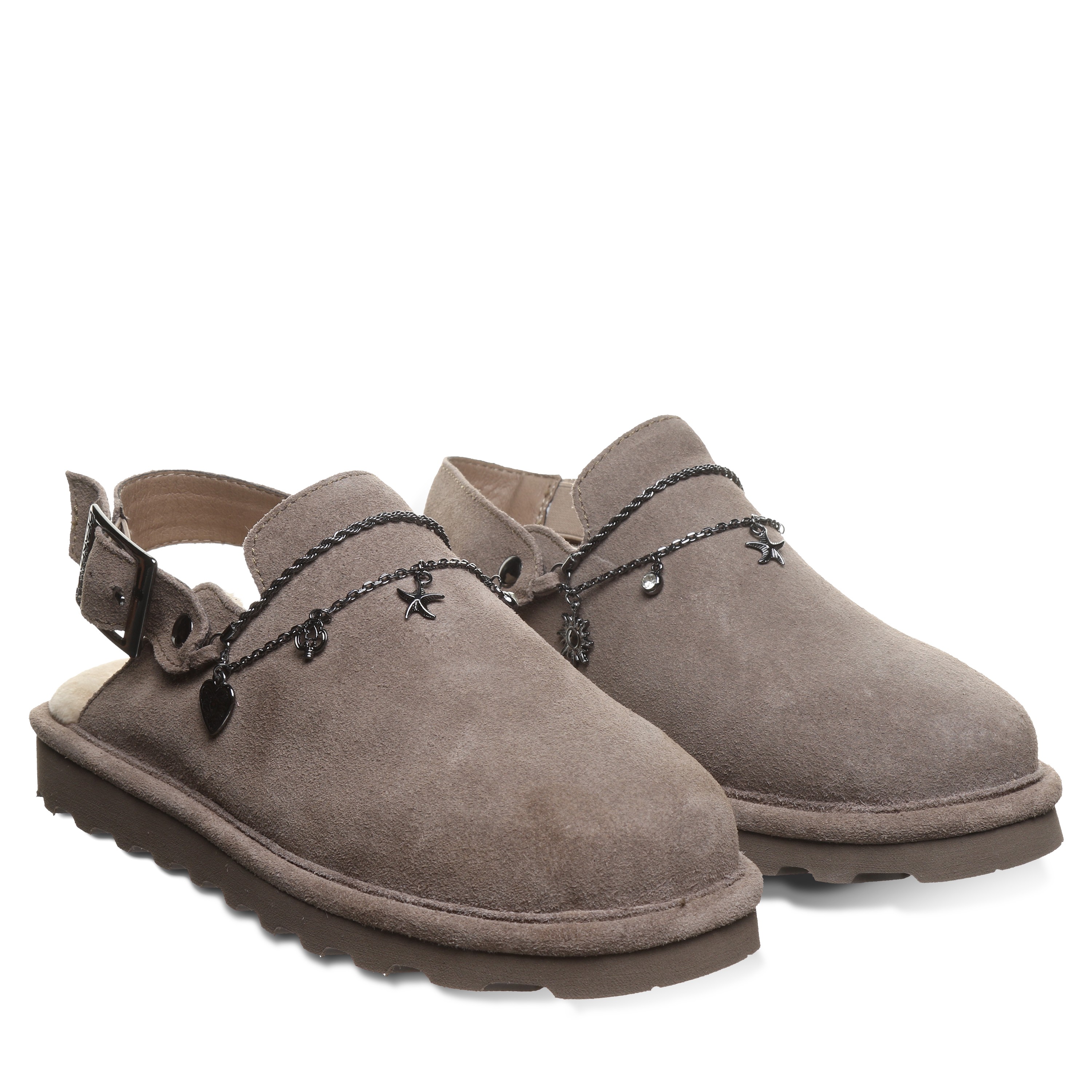 Bearpaw Lexi Women's Comfort Slippers - 3438w. Add a touch of glam to your relaxation with the Bearpaw Lexi Women's Slippers. A classic clog gets upgraded with dainty chain and playful charms. The adjustable ankle strap makes this the perfect fit for your unique style and comfort needs.