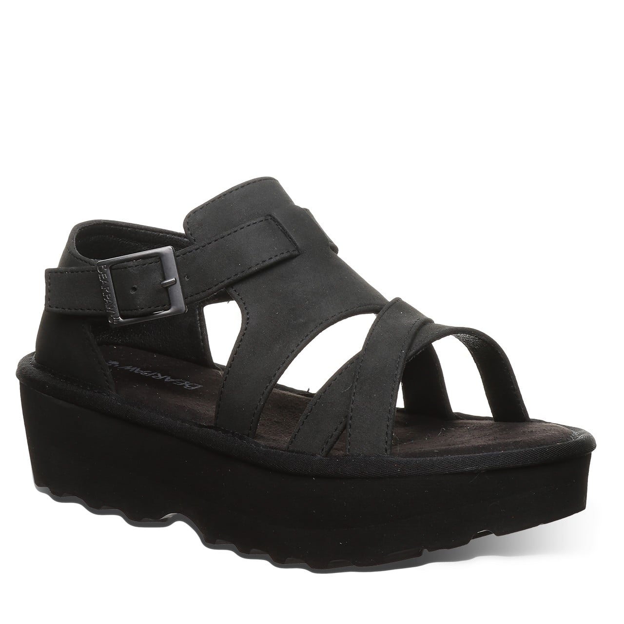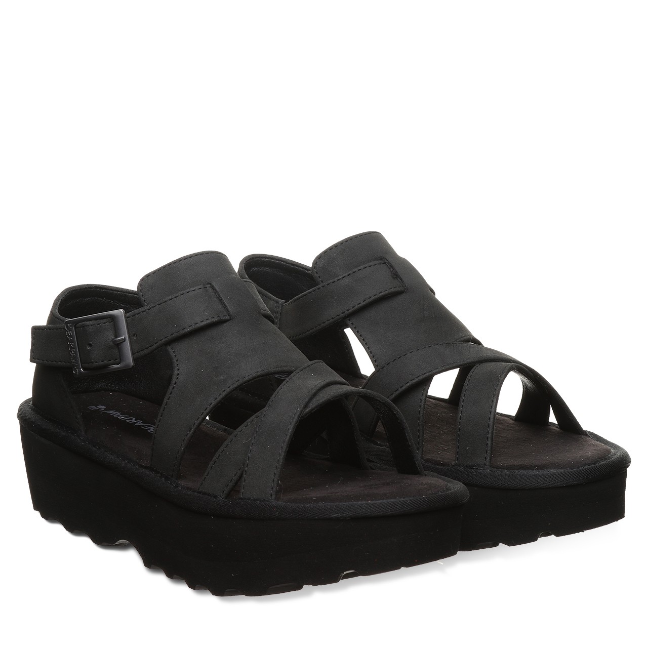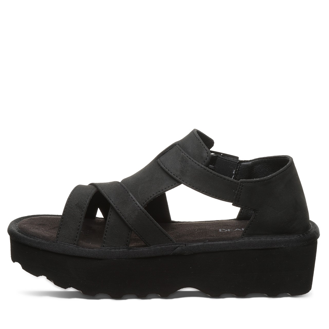 Bearpaw Pinnacle 3086w Women's Comfort Platform Sandals. Enjoy all-day comfort and style with the Bearpaw Pinnacle women's sandals. Made with a fashionable faux leather upper and cross-strap design, these sandals are both cute and functional. The cushioned footbed and lightweight construction make them perfect for everyday wear.