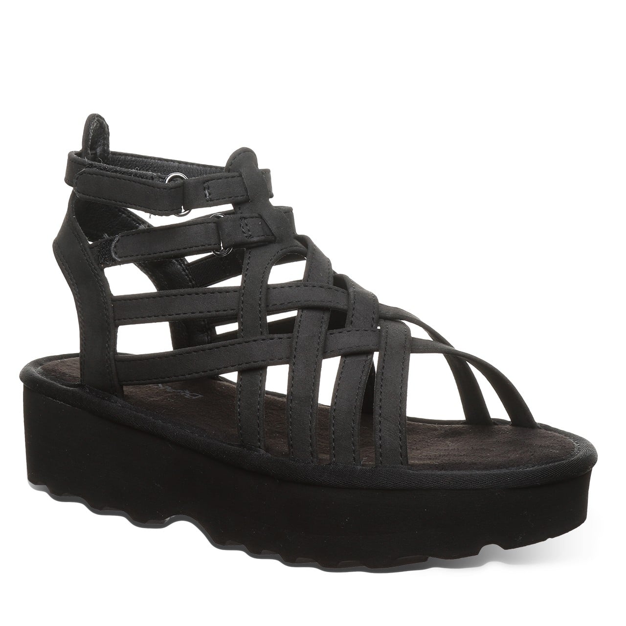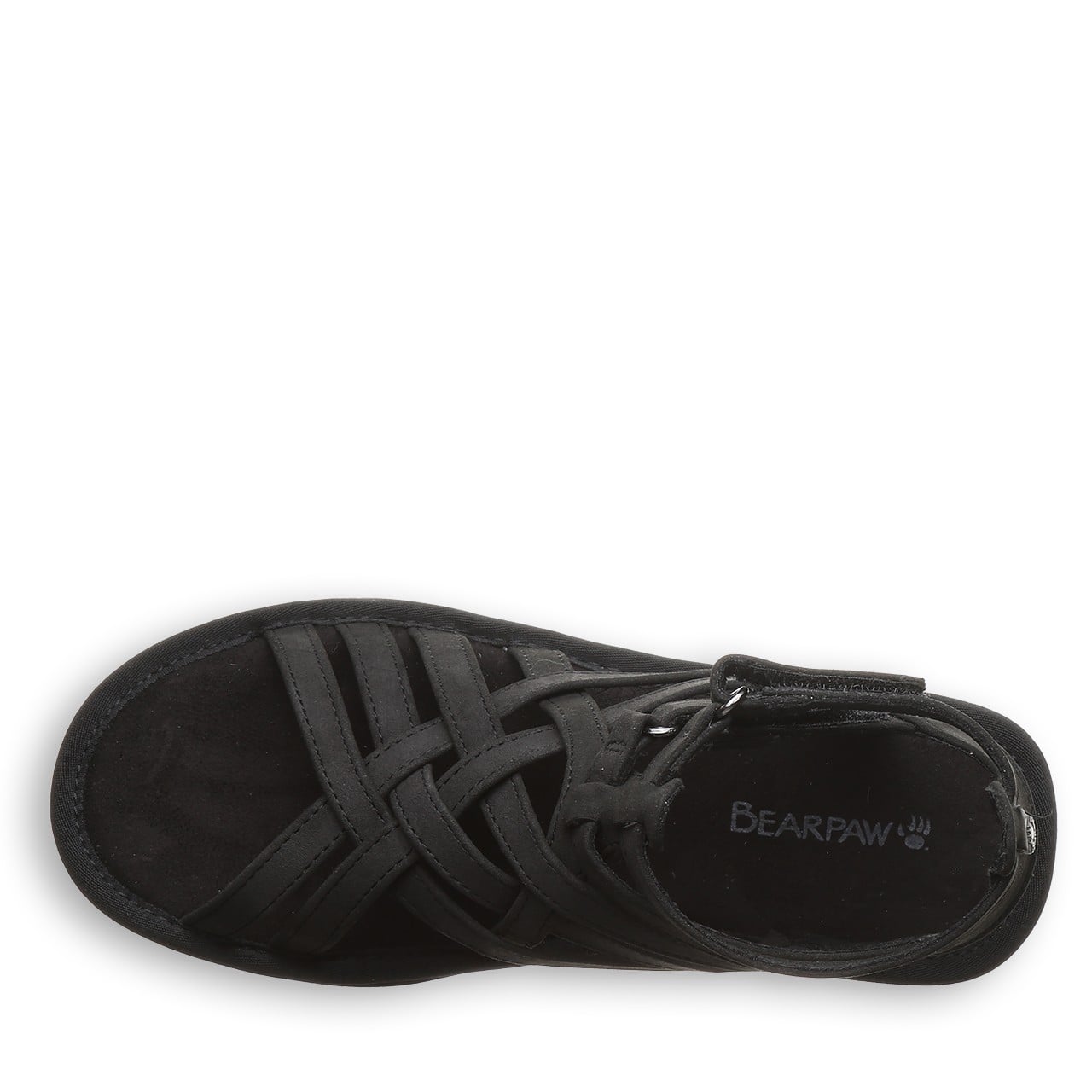 Bearpaw Prominence Women's Comfort Platform Sandals. Step into the spotlight with these fierce platform gladiator sandals from Bearpaw. The Prominence features a convenient hook and loop closure for a custom fit and a cushioned quilted footbed to pamper your feet. Add a trendy touch to your outfit with the 1.25" flatform outsole.