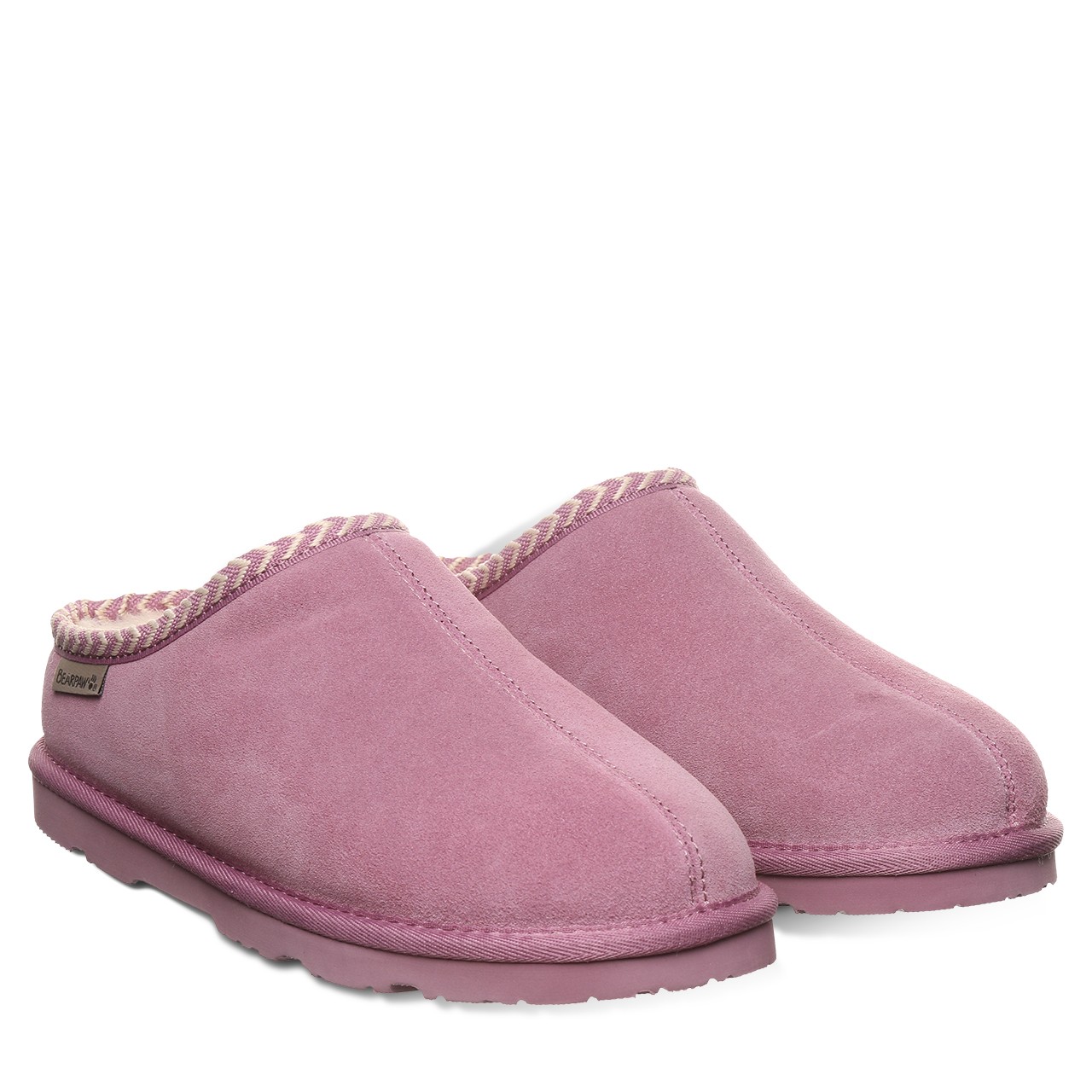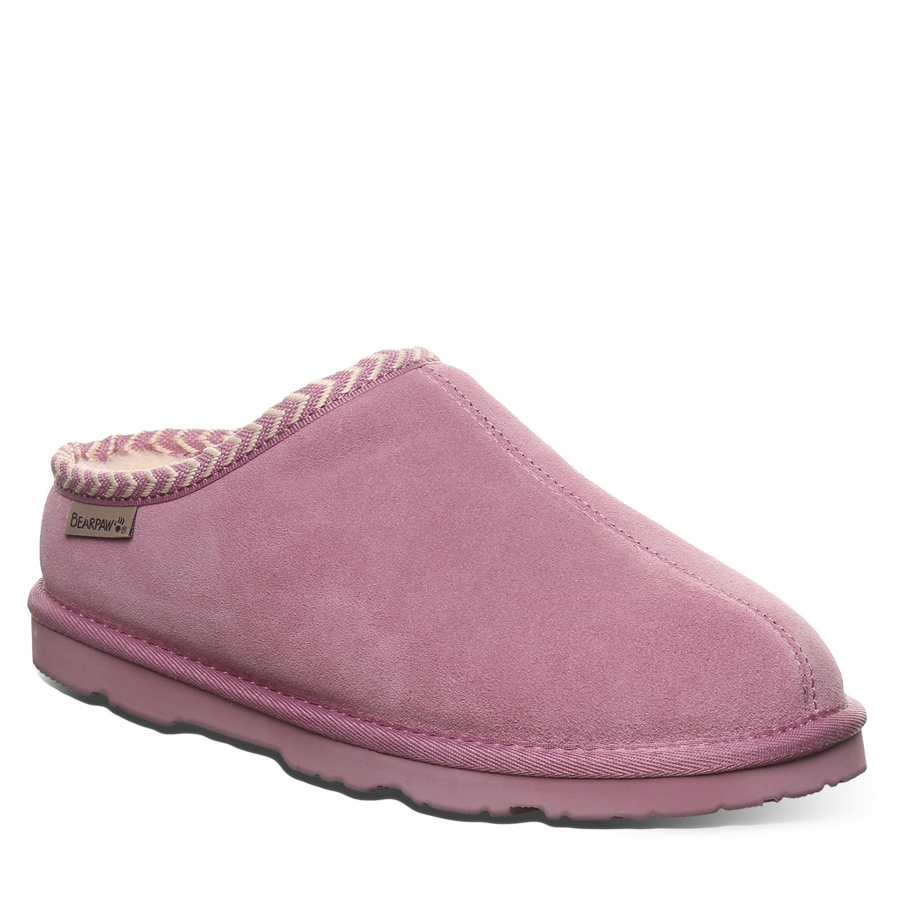 Bearpaw Tabitha Women's Indoor & Outdoor Slippers. Whether you're lounging at home or running errands, the Bearpaw TABITHA Women's Slippers - 2973W are your perfect companion. These slippers boast a soft wool lining and a suede exterior, treated with BearCoat Rain & Stain Repellent for added durability. The lightweight rubber sole ensures they're not too bulky, offering optimal comfort for both indoor and outdoor wear.