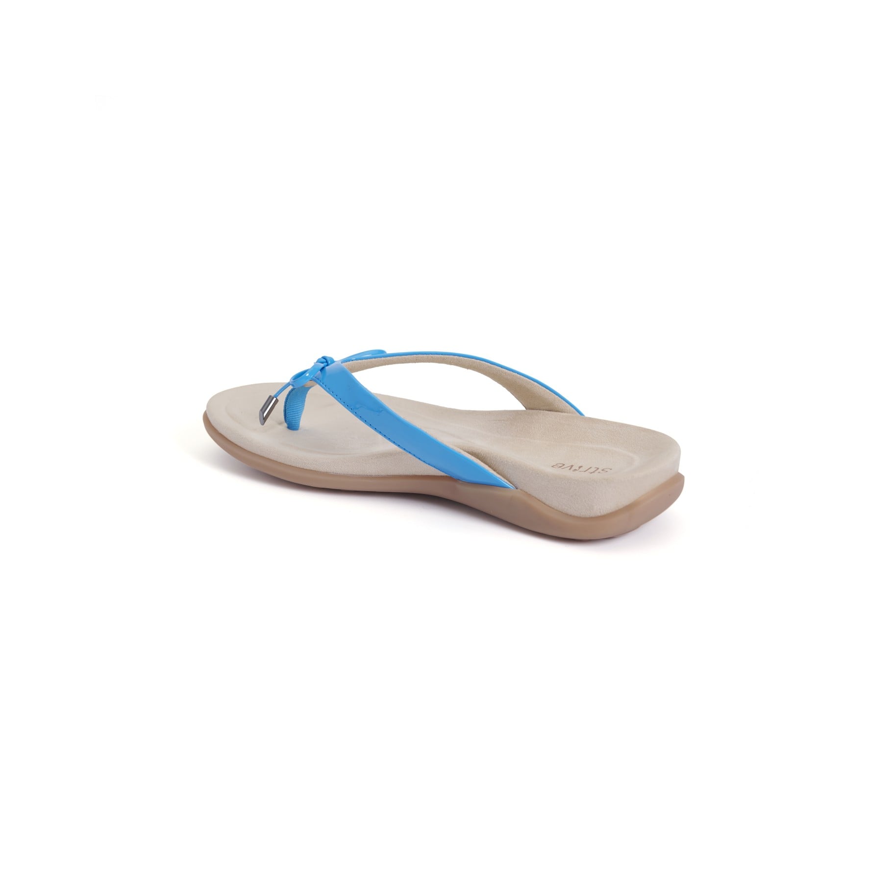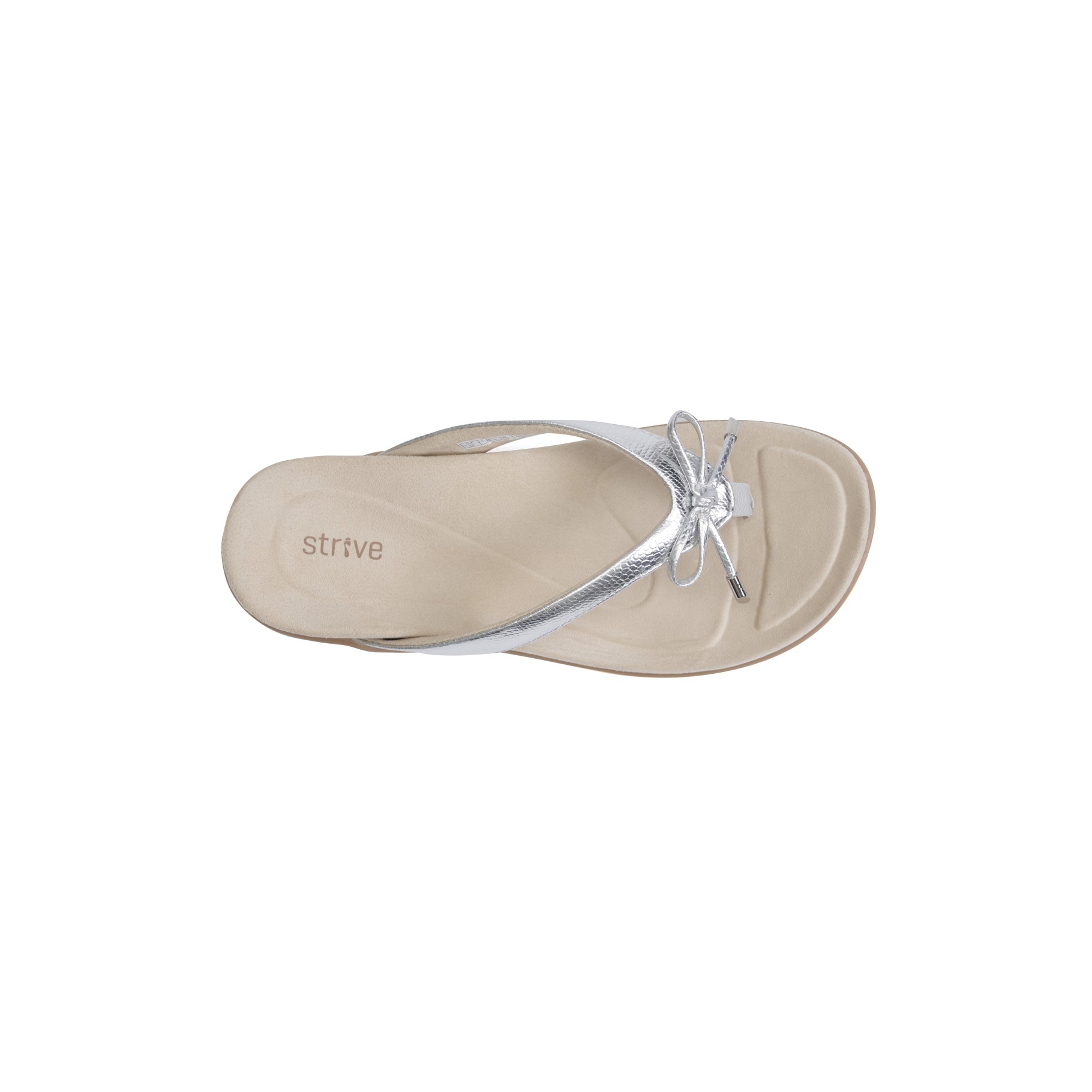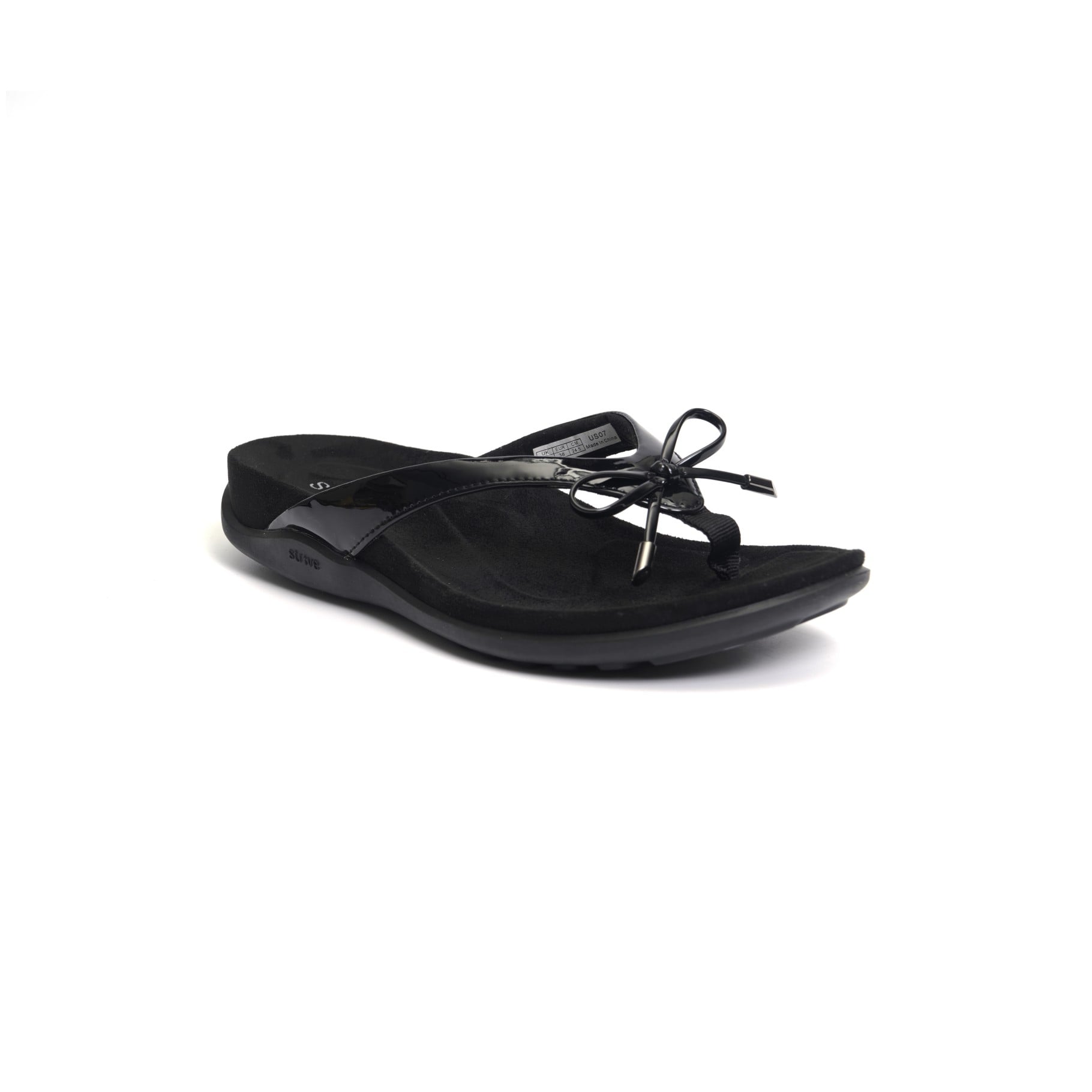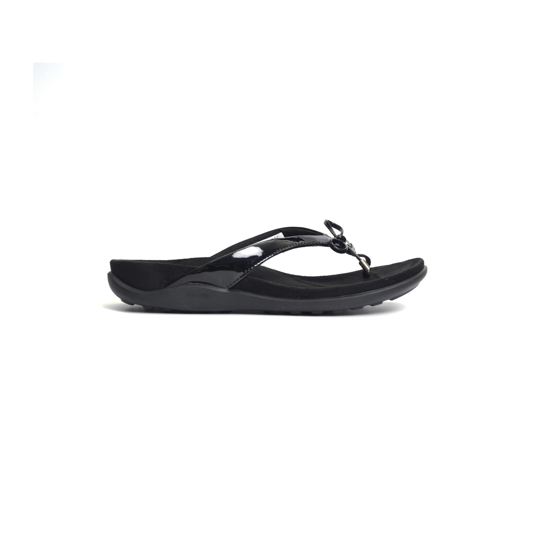 Strive Island II Women's Orthotic Sandals with Arch Support. The Strive Island II women's orthotic sandals blend stylish feminine design with cutting-edge comfort features, ideal for beach outings, vacations, and casual summer days. This toe-post sandal boasts an elegant bow accent and delivers reliable support through its patented dual-density biomechanical footbed, which cushions key pressure points and promotes proper alignment for all-day ease.
