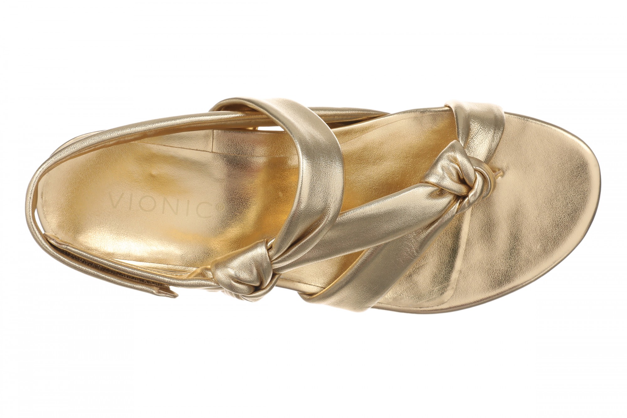 Vionic Geneva Women's Arch Support Thong Sandal. Powered by Vio Motion Technology, the Vionic Geneva thong sandal balances your body while providing lasting comfort. This versatile mini-wedge features a cushioned footbed and flexible outsole. The soft tubular leather upper with feminine knotted detail and adjustable strap makes it both stylish and functional.