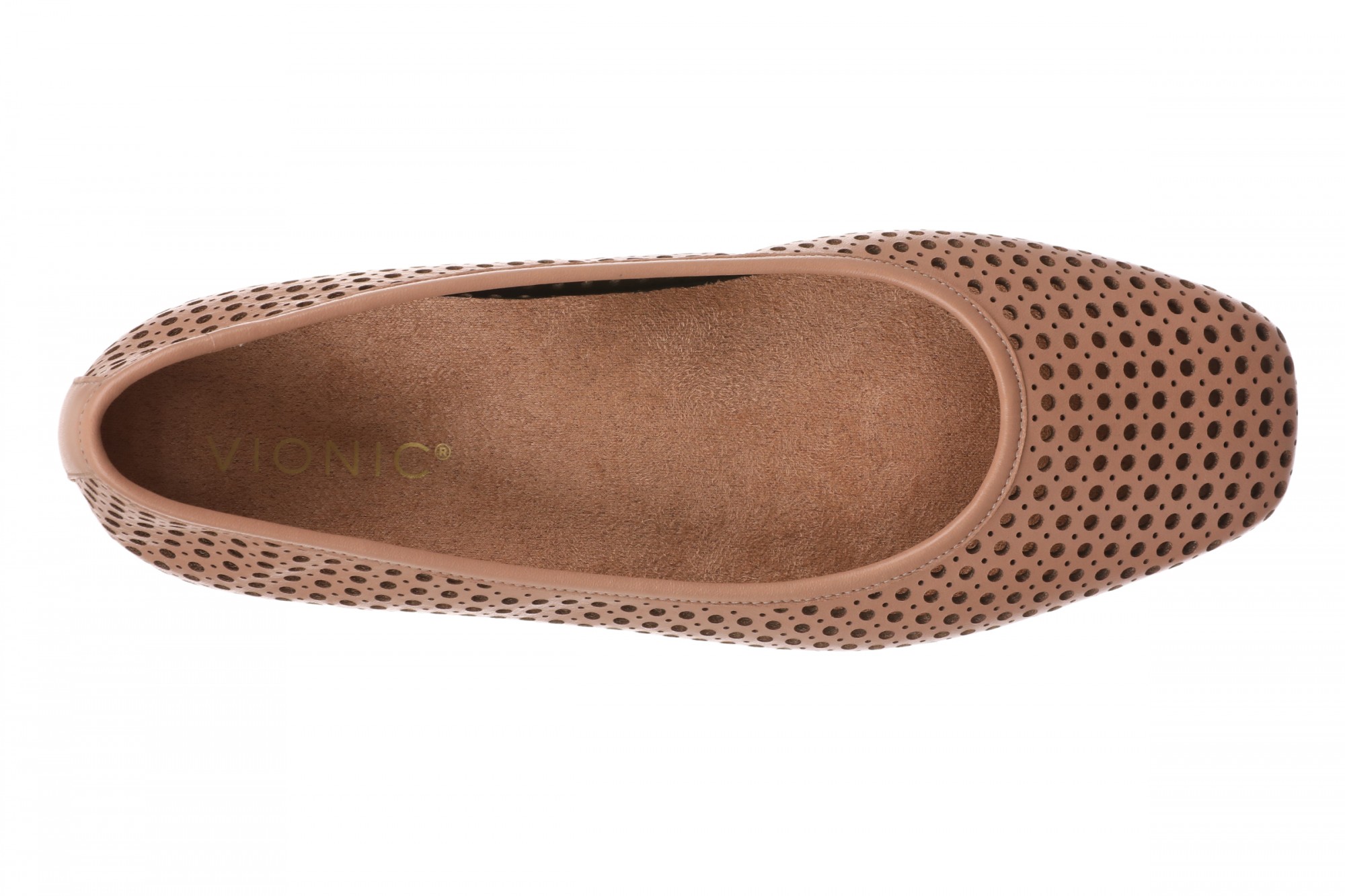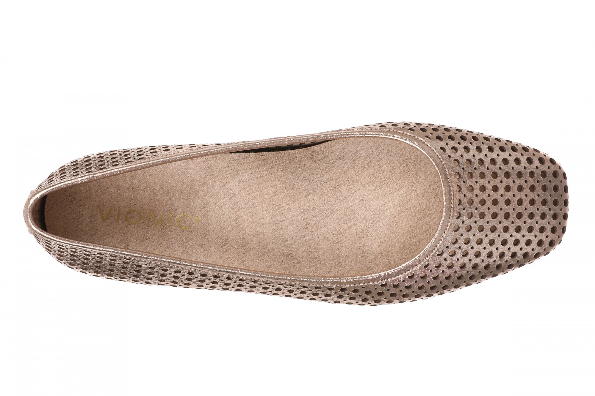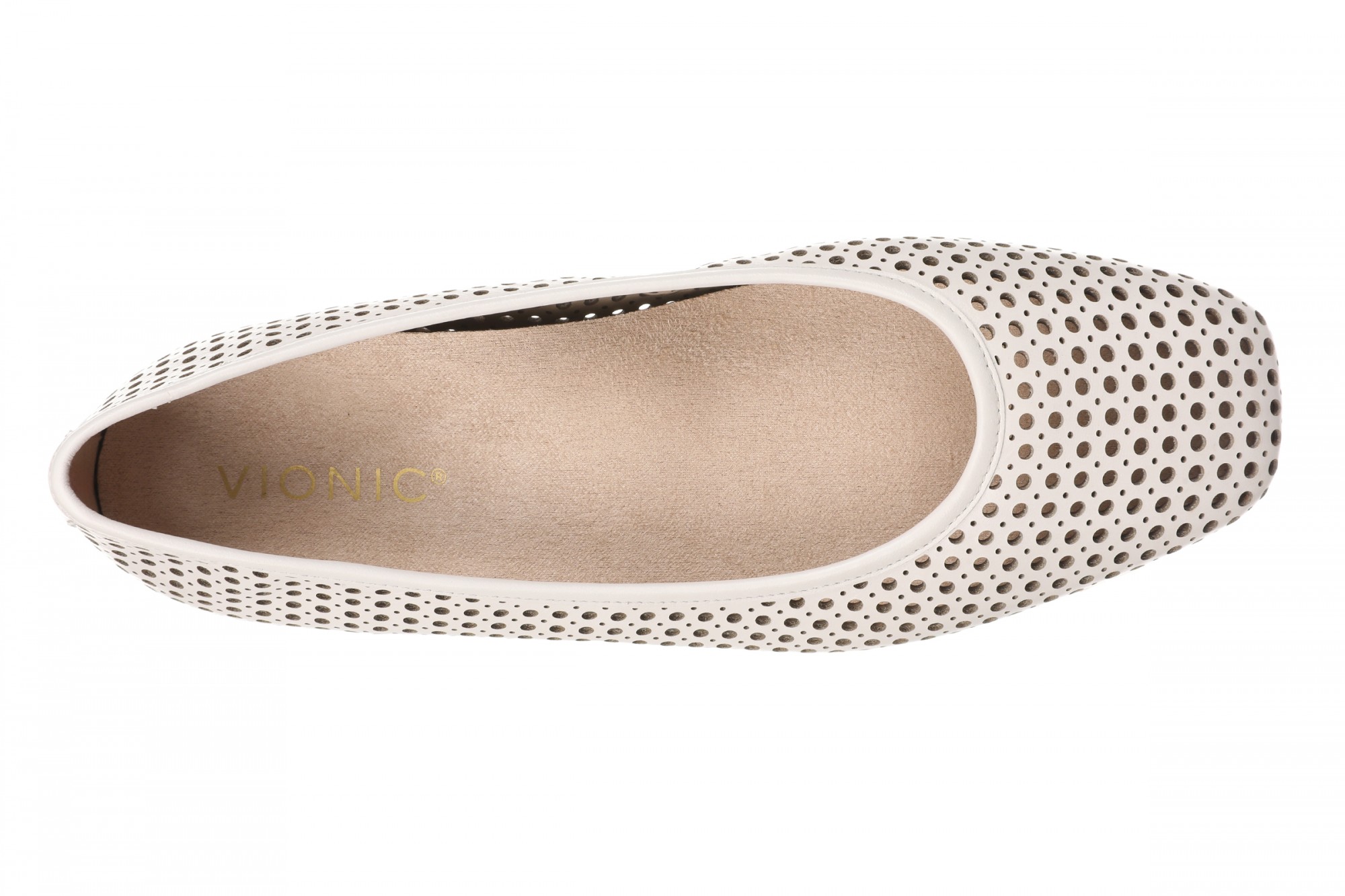 Vionic Orinda Perf Women's Arch Support Ballerina Flats. Powered by Vio-Motion Technology, the Orinda Perf ballerina shoe delivers the perfect balance of style and all-day comfort. This timeless flat features a chic circular perforated design for breathability and includes two removable insoles so you can customize your fit.