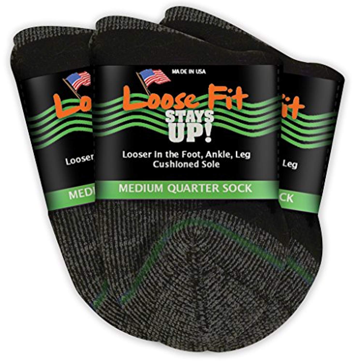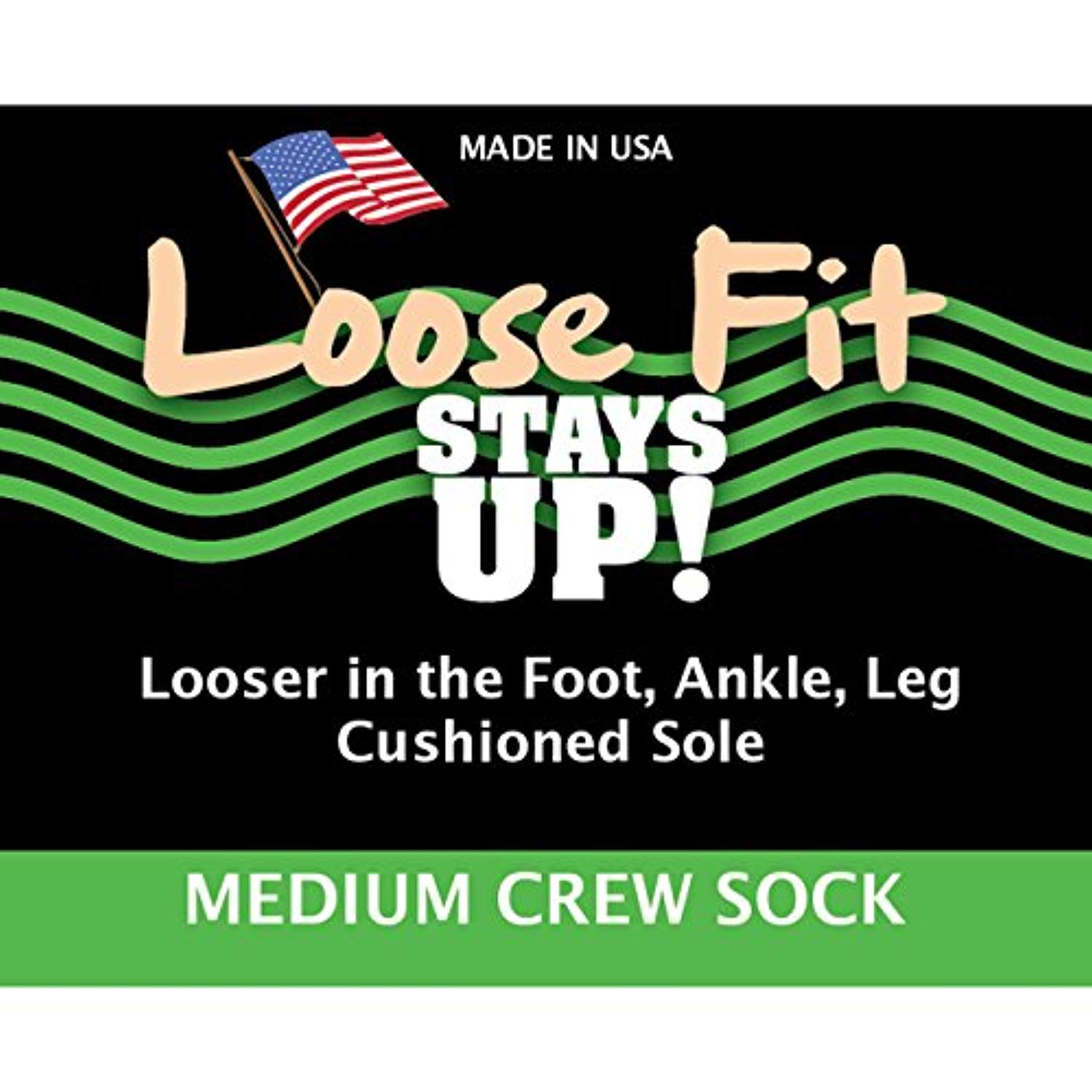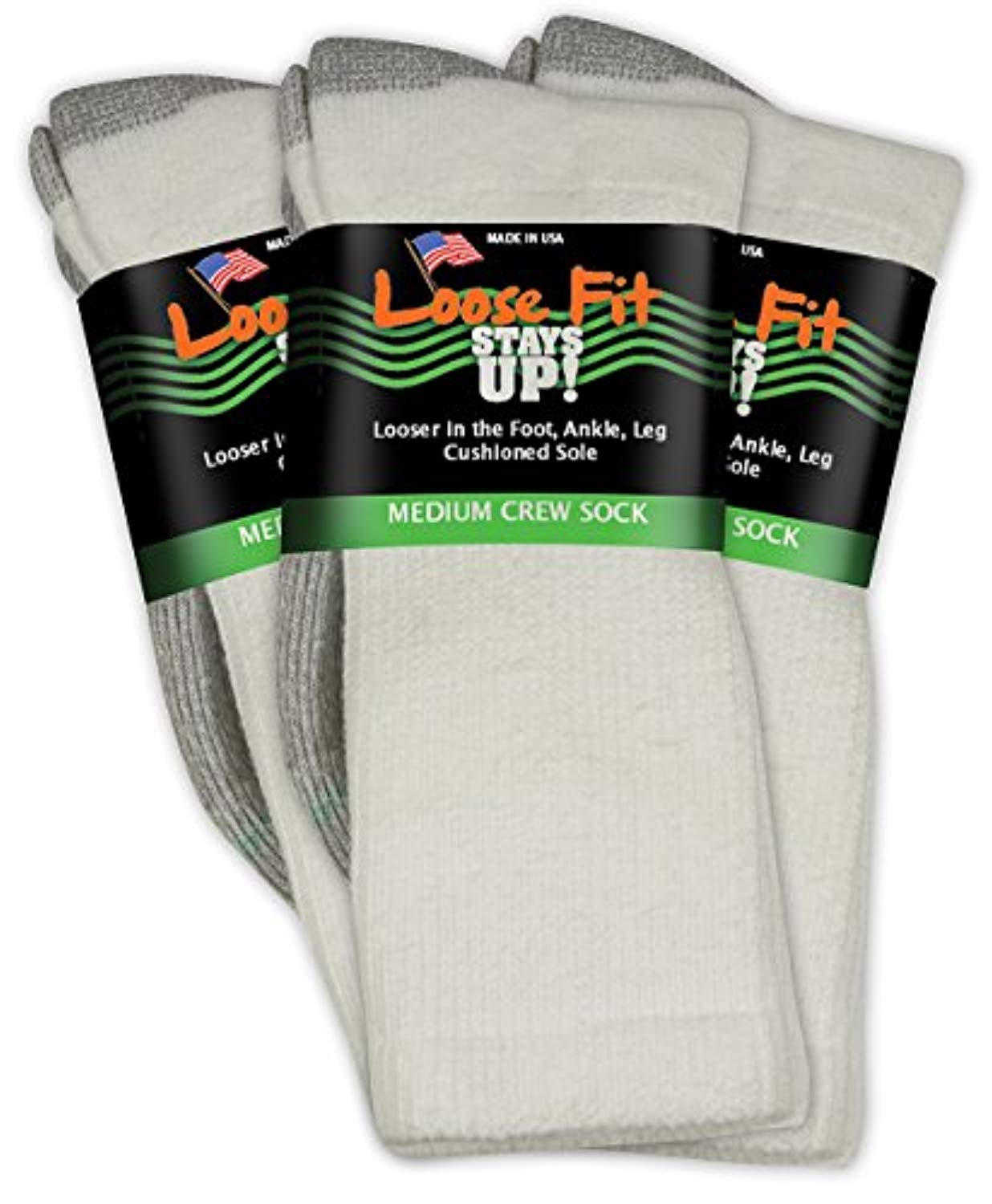 Extra Wide Loose Fit Stays Up Socks - 3 Pack - Men's / Women's wider fitting socks. Free Shipping. Who Are They For? There are regular socks and there are extra wide socks. The "Loose Fit Stays Up" style is somewhere in the middle. If you have a regular size foot or a wide foot up to 5E, and are so tired of tight socks that squeeze your legs and leave huge indentations on your calves then these socks are for you. They also fit beautifully inside of boots and are perfect for scrunching over leggings. 25% WIDER IN THE FOOT, ANKLE & LEG - Perfect for those who have regular feet as well as wide feet, and are tired of tight socks that cut off circulation. These socks offer a more relaxed fit and are truly wider in the foot, ankle and leg! They stay up and are easy to put on and take off.