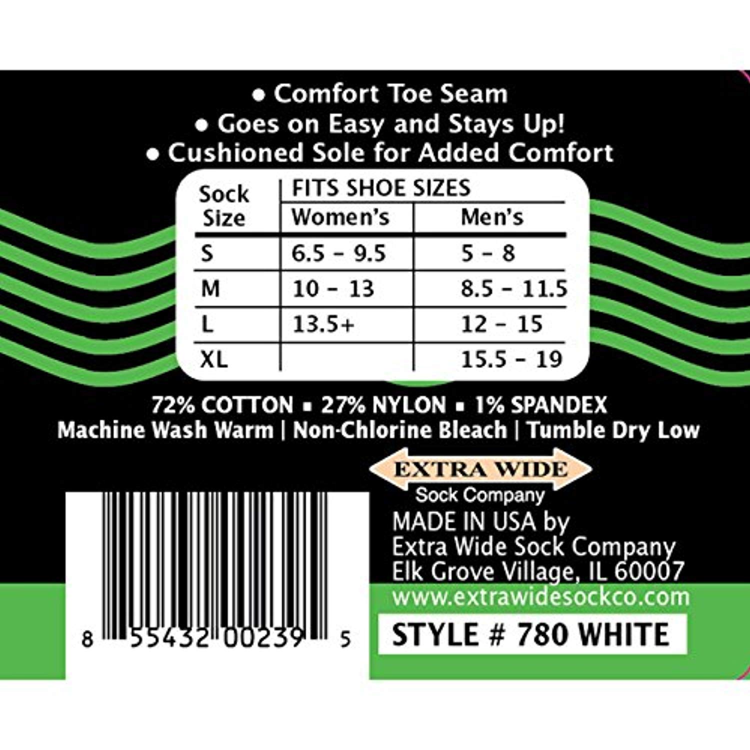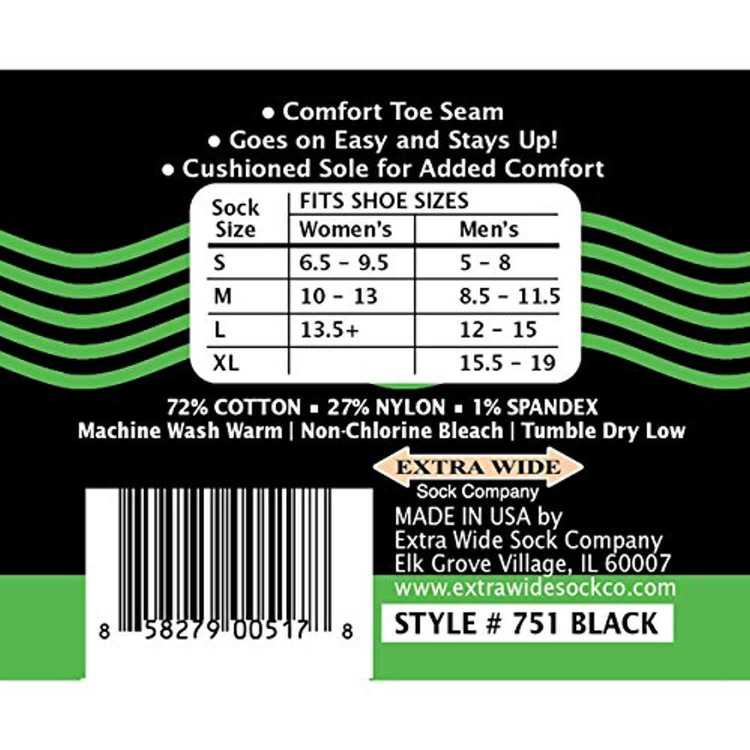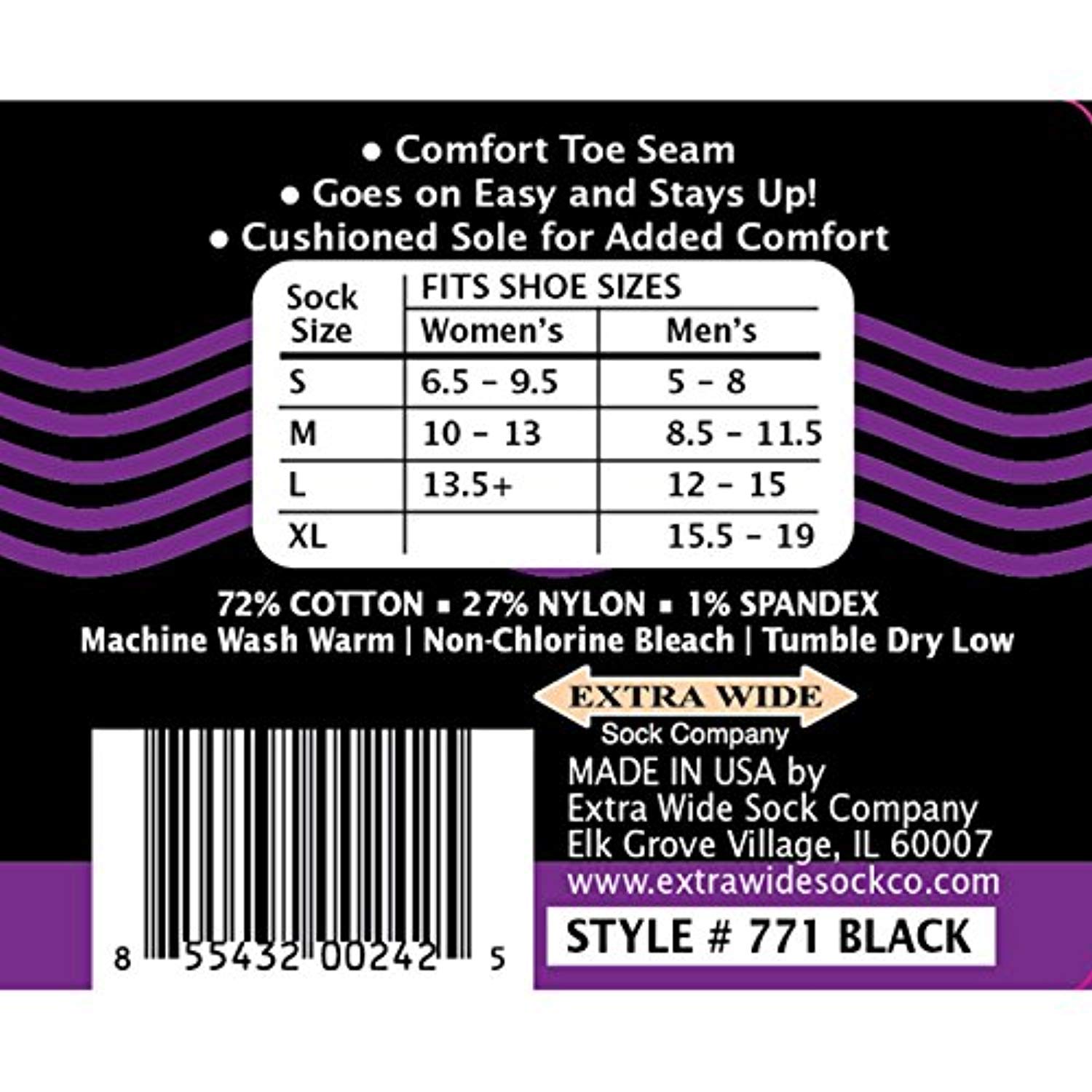 Extra Wide Loose Fit Stays Up Socks - 3 Pack - Men's / Women's wider fitting socks. Free Shipping. Who Are They For? There are regular socks and there are extra wide socks. The "Loose Fit Stays Up" style is somewhere in the middle. If you have a regular size foot or a wide foot up to 5E, and are so tired of tight socks that squeeze your legs and leave huge indentations on your calves then these socks are for you. They also fit beautifully inside of boots and are perfect for scrunching over leggings. 25% WIDER IN THE FOOT, ANKLE & LEG - Perfect for those who have regular feet as well as wide feet, and are tired of tight socks that cut off circulation. These socks offer a more relaxed fit and are truly wider in the foot, ankle and leg! They stay up and are easy to put on and take off.
