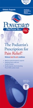 Powerstep ProTech Full OrthoticsThe Powerstep ProTech Full Length orthotics give relief from heel & arch pain and related ailments by controlling foot pronation. The Powerstep ProTech Full Length Orthotics were designed by podiatrist Dr. Les Appel by using computer scans of over several thousand feet. Powerstep ProTech eliminates excessive inward rolling motion of the foot (pronation). Proper pronation control virtually eliminates pain or strain in your heel, arch, ankles, knees & lower back. Features & Benefits of the Powerstep ProTech