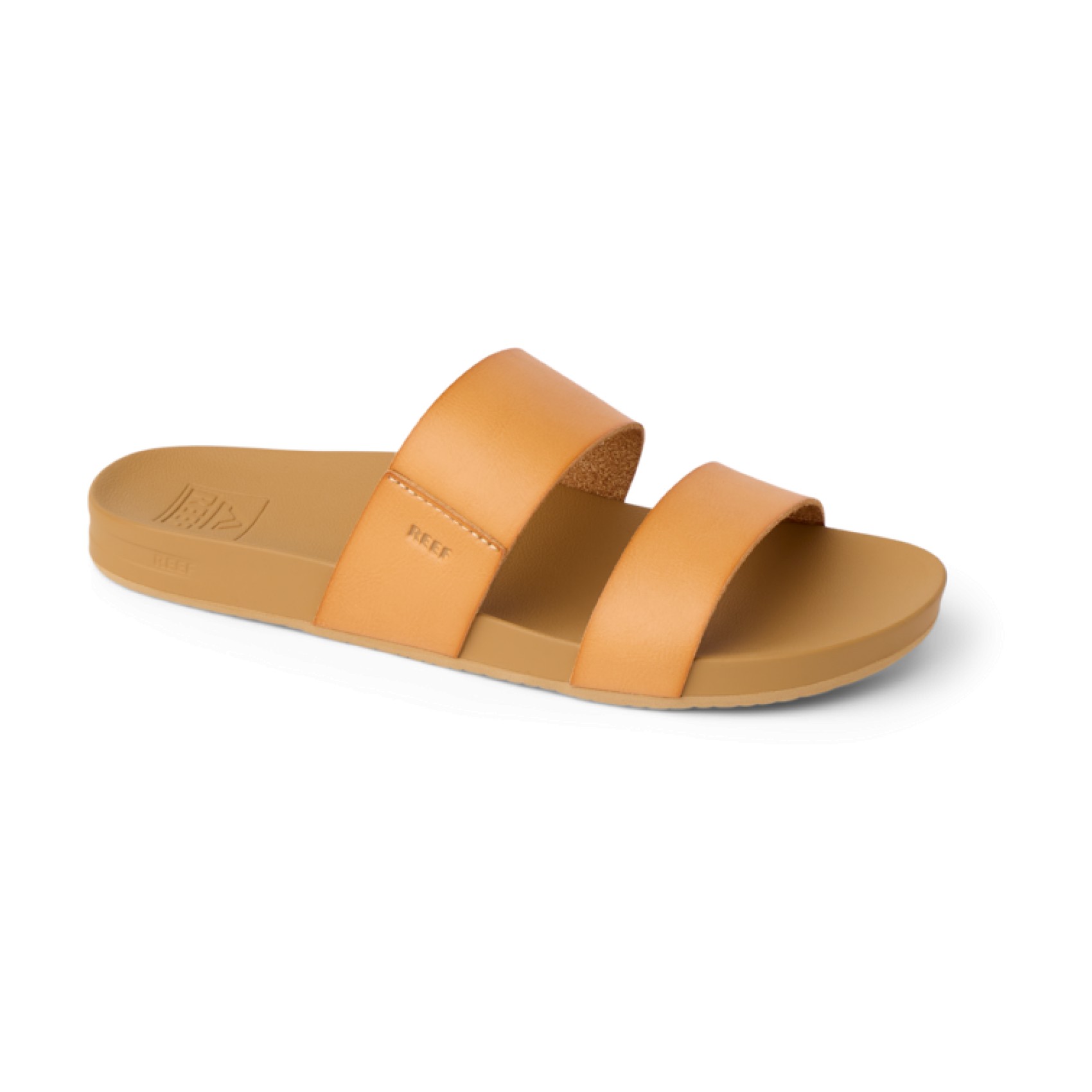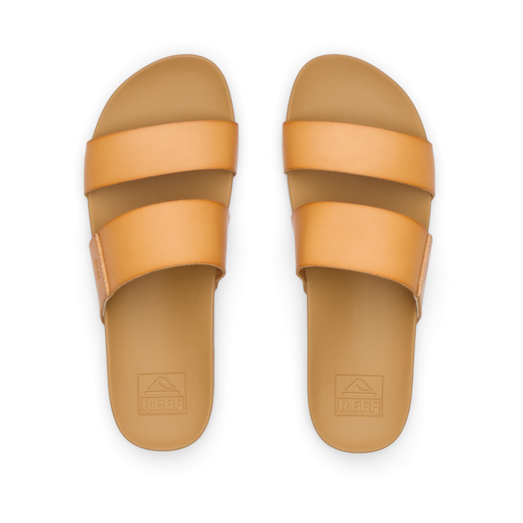 Reef Cushion Vista Women's Sandals. Do we at REEF have a favorite sandal? Does a parent have a favorite child? Never. (But some favorites are more favorite than others. We love these perfectly proportioned sandals, with a soft double vegan leather strap, modern silhouette and high-energy rebound footbed. But if any of our other shoes asks, we never said this.). High energy rebound footbed for more cushioning in every step. Relaxed modern contouring with anatomical arch support and heel cupping. High density rubber sponge outsole.