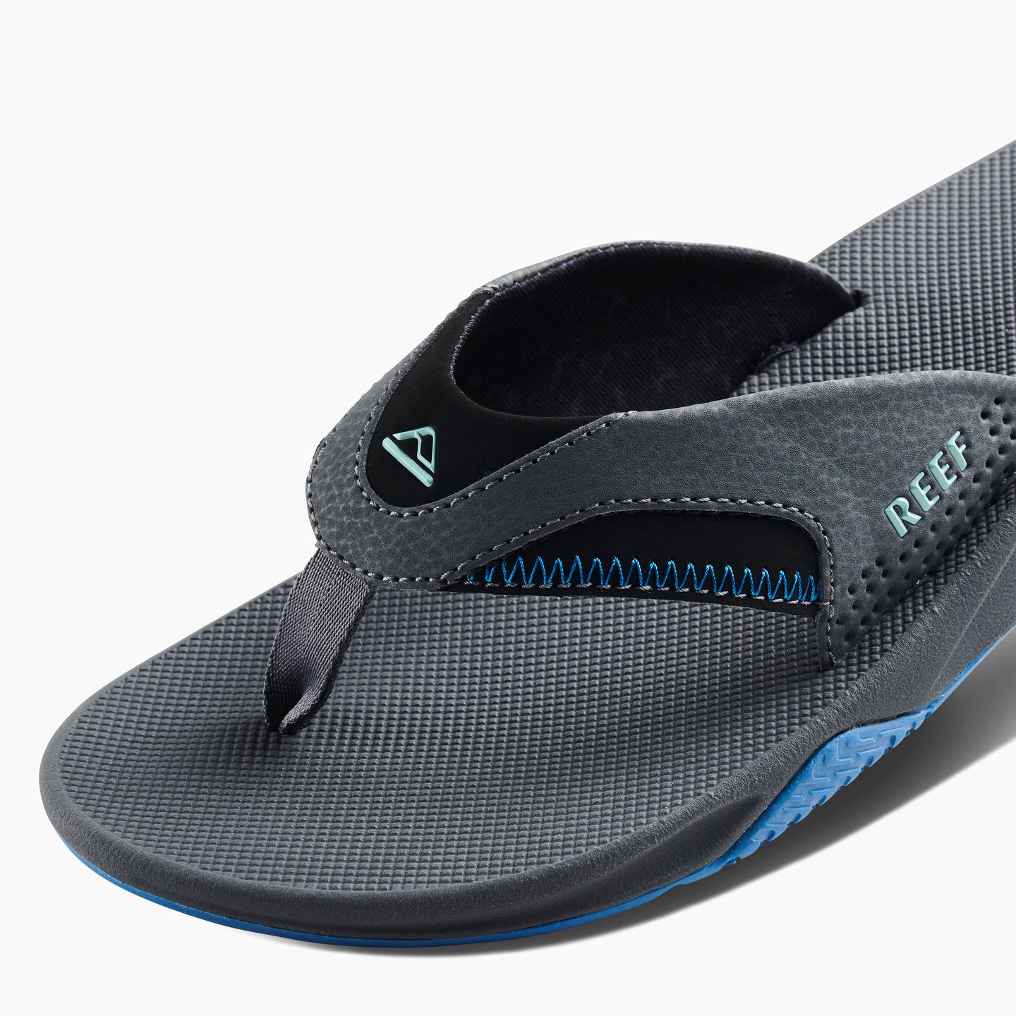 Reef Fanning Men's Sandals - Free Shipping. How you become a legend: work- sweat- repeat. Surfing great Mick Fanning inspired this hard-working flip flop. With a synthetic nubuck upper- padded liner- compression molded footbed with a heel airbag- plus a rubber outsole with built-in bottle opener to celebrate success. Reef is surf. They're inspired by water- by the ocean- by perfect waves- and the journey along the way to find them. They are a genuine- global surf brand that harvests the best of the lifestyle and shares it through authentic- innovative and fashionable product. At the core of Reef is their Latin roots and the inherent sensuality of the beach. The Reef team is committed to having fun in and out of the water- as well as giving back to the world that inspires them.