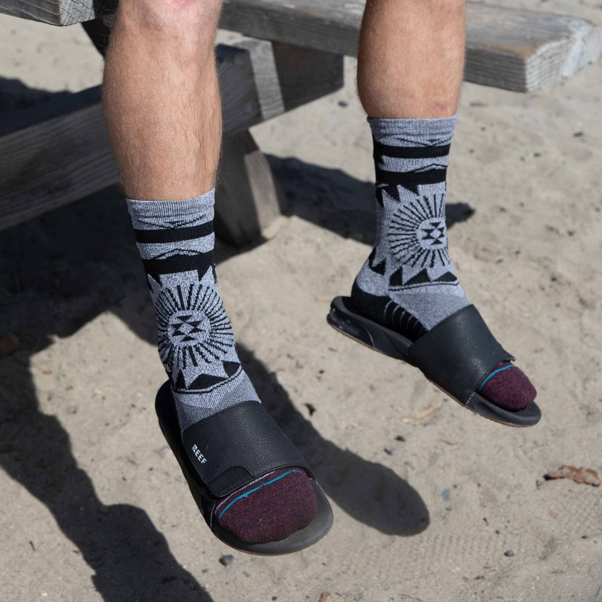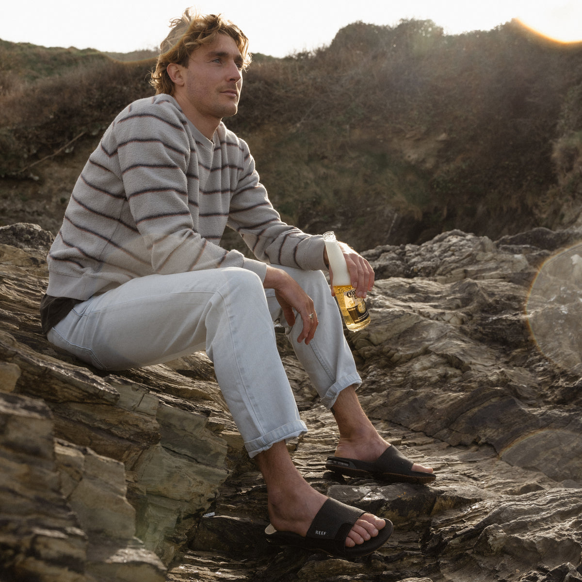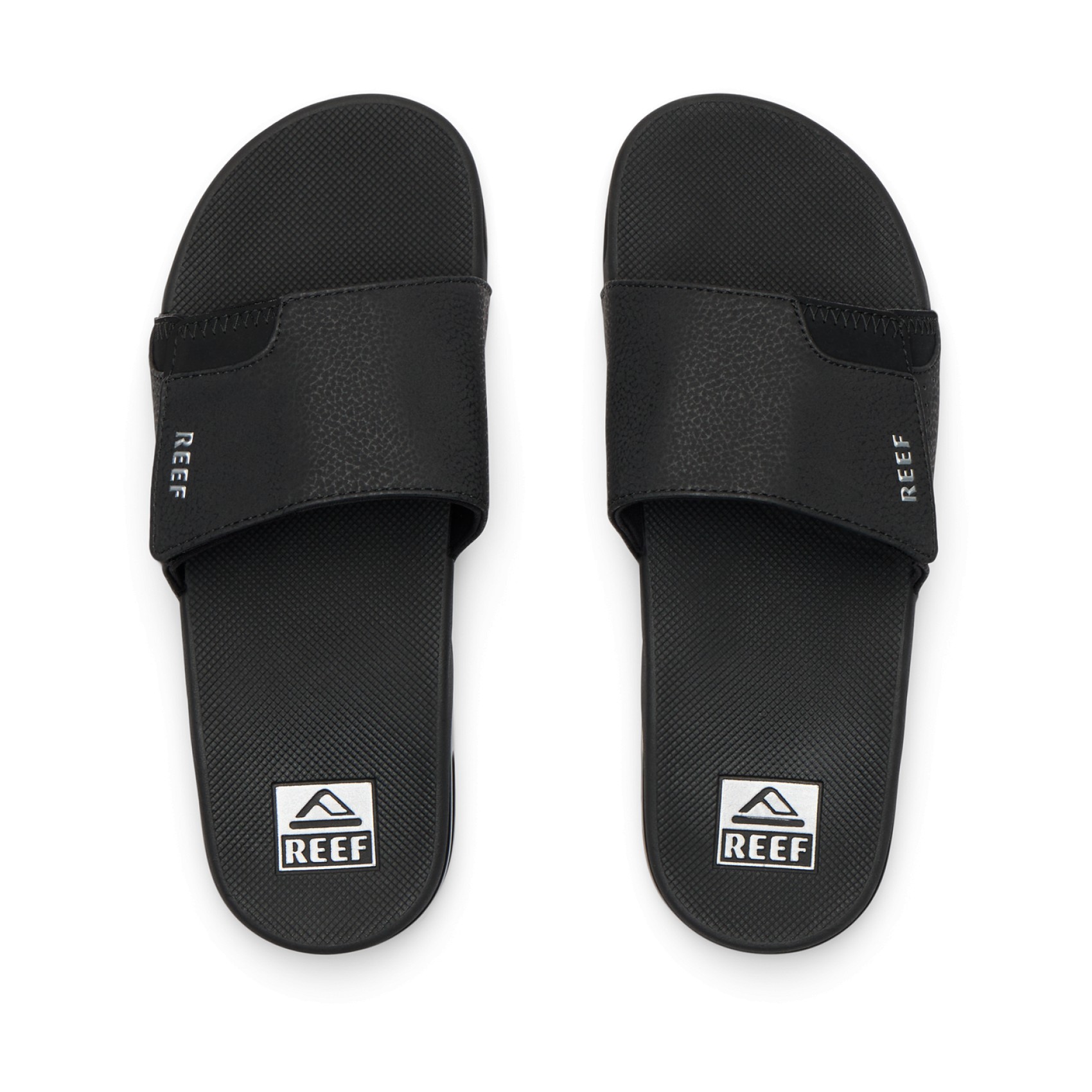 Reef Fanning Slide Men's Sandals. 100% Fanning. 100% slide. 100% Reef. The Fanning slide is 300% awesome. With everything that makes the Fanning our bestselling men's shoe, including the crucial built-in bottle opener. Now styled as an easy on, easy off, easy everything slide. 100% do it.. |Compression molded high rebound EVA with a built-in airbag under foot for added comfort. |Non-Marking Rubber Outsole with Bottle opener so that no party may go unquenched|. .
