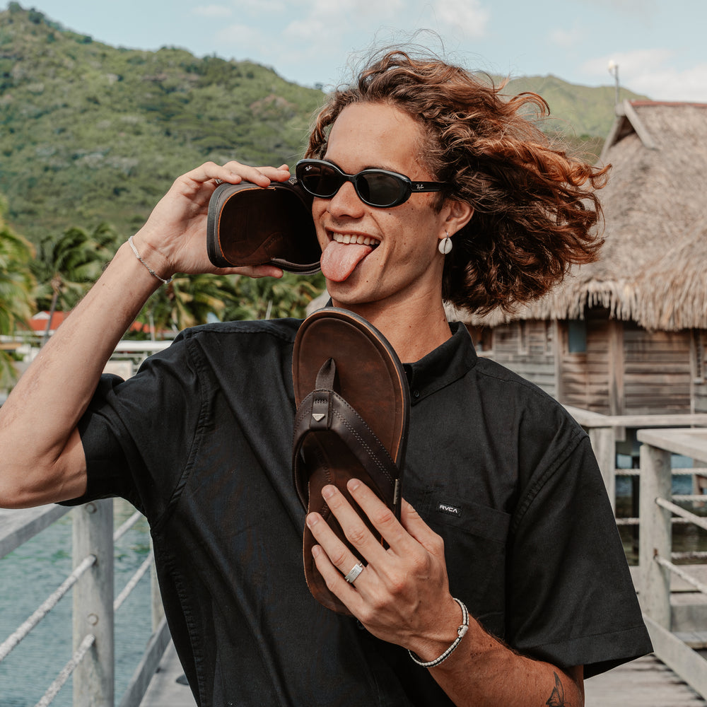 Discover the Reef Leather Offshore Men's Sandals, perfect for all-day comfort from playground to pool. Featuring water-friendly synthetic straps, high-energy rebound cushioning, and durable rubber outsole for ultimate support and style.