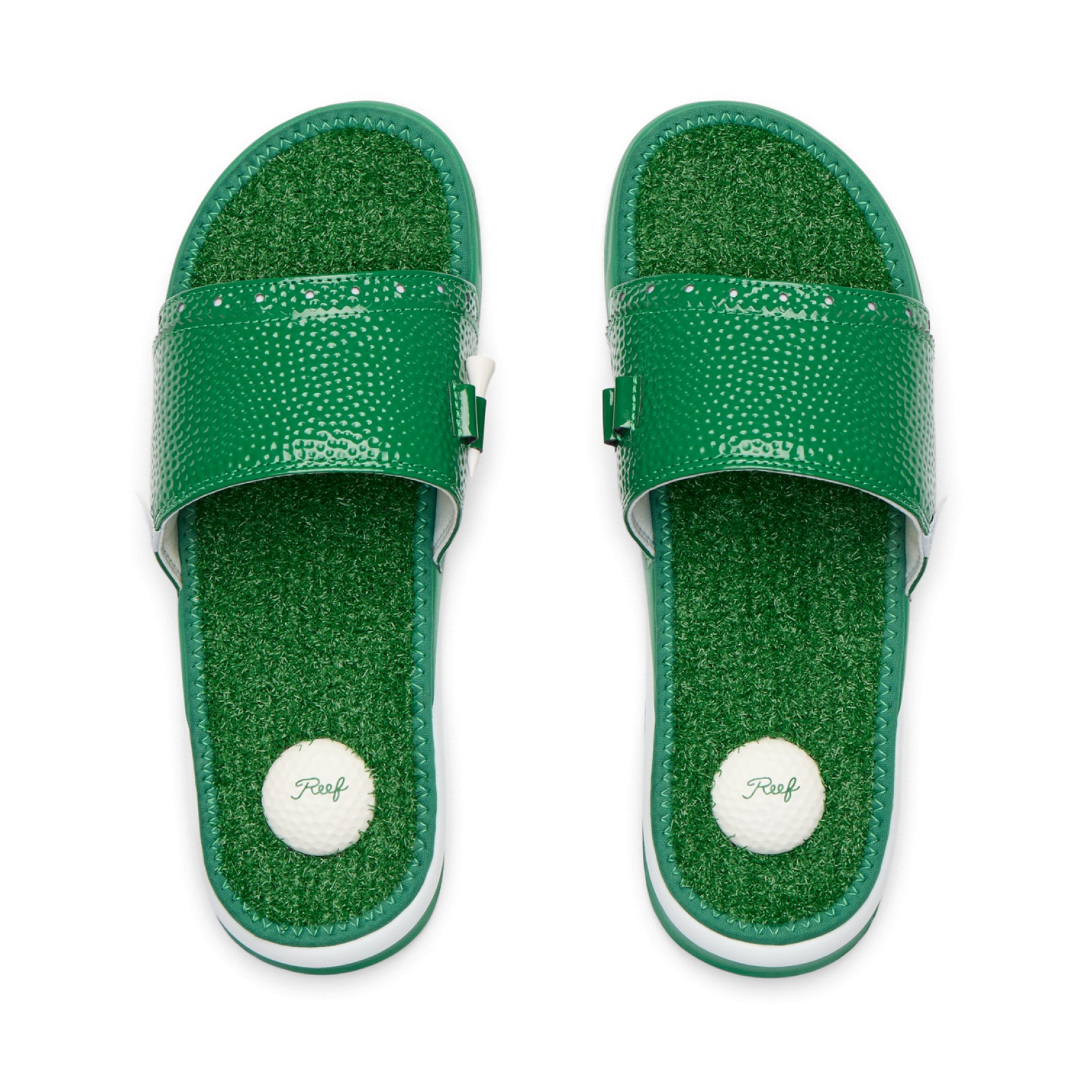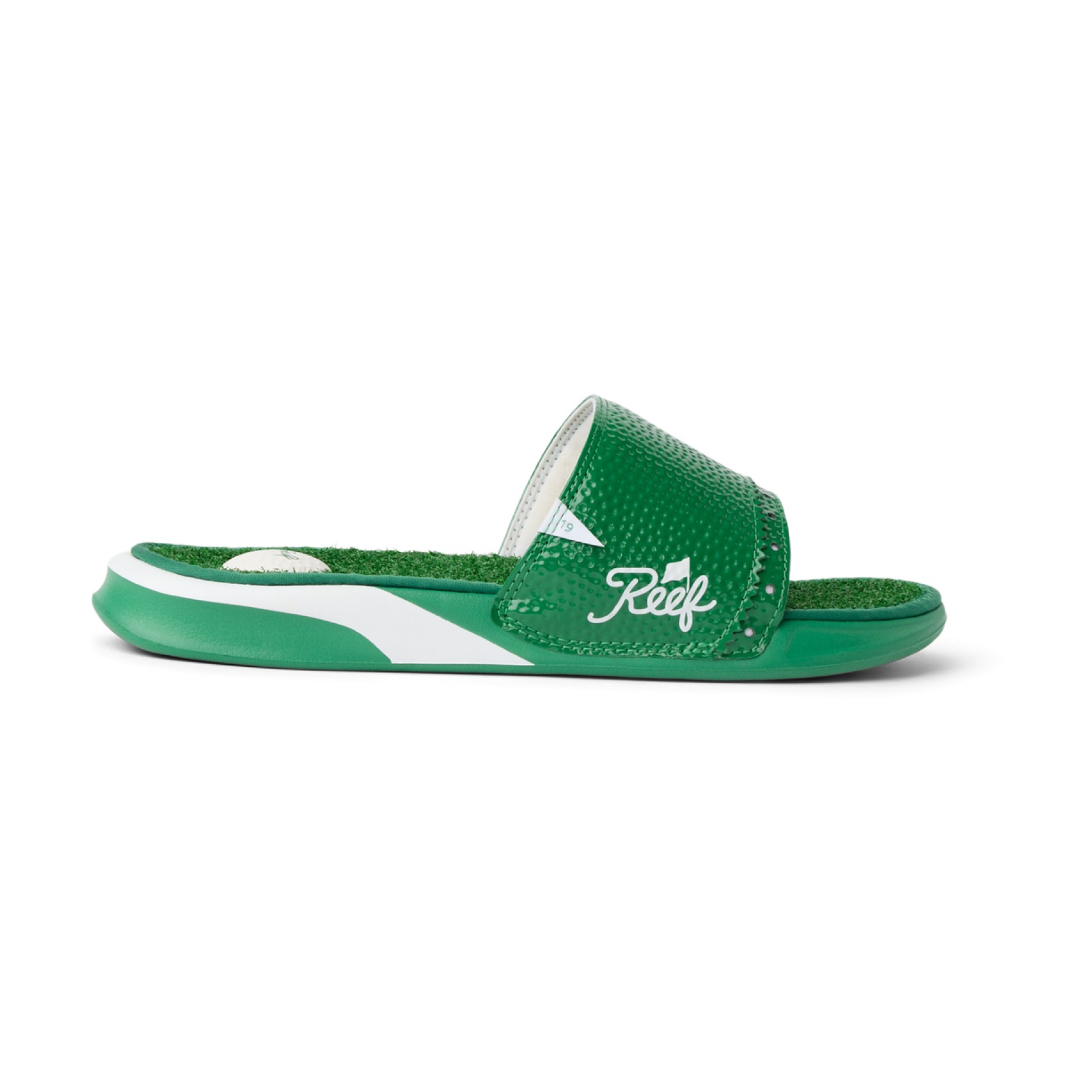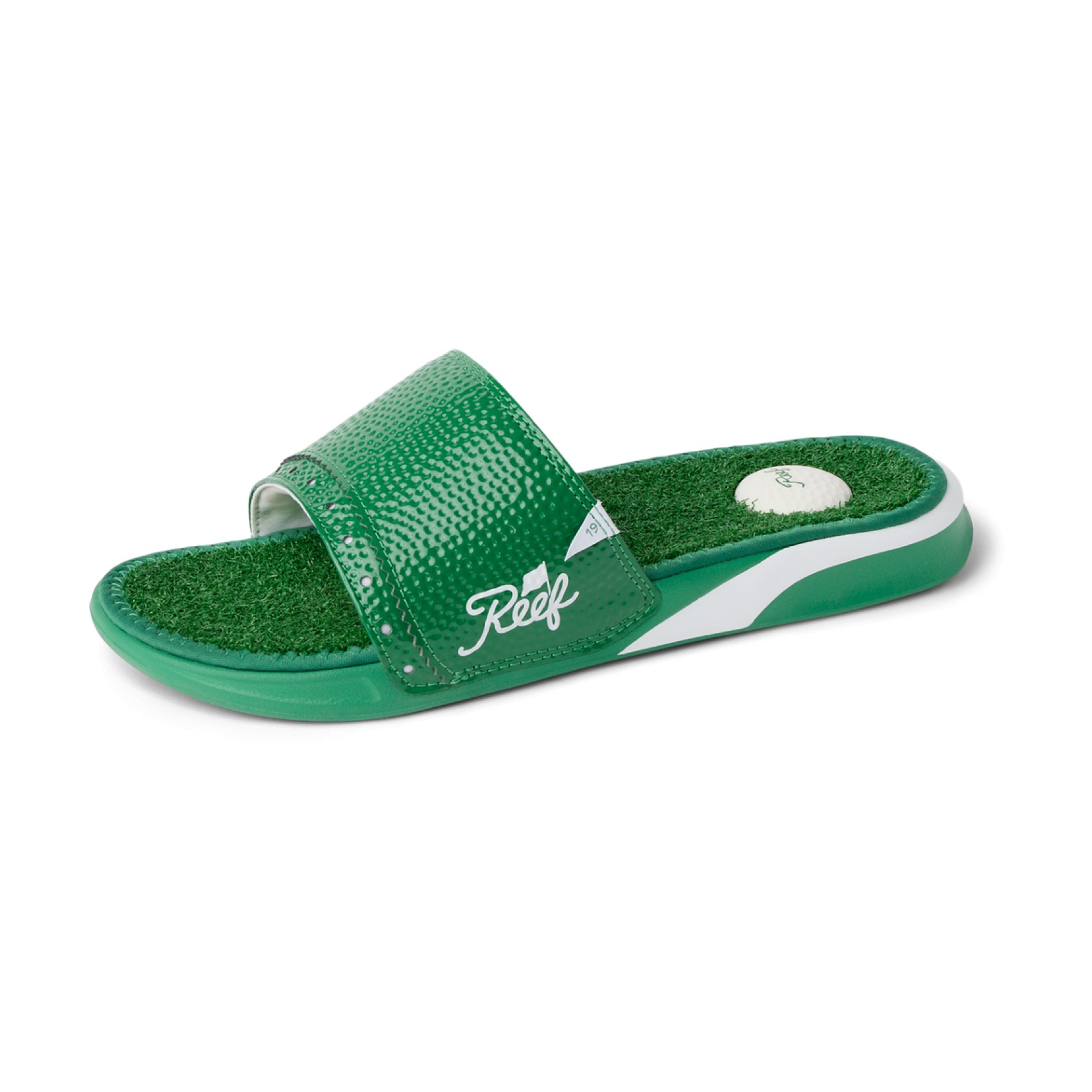 Reef Mulligan Slide Men's SandalsMake a smart choice with the Reef Mulligan Slide Men's Sandals, designed for golfers who appreciate comfort and fun details. These slides boast a faux grass footbed that mimics the feel of the green, a golf ball heel pad for extra cushioning, a convenient built-in tee holder, and a durable foam outsole that's built to last. Whether you're in the locker room or enjoying drinks after your game, these sandals deliver hole-in-one performance and style for everyday wear. Features of Reef Mulligan Slide Men's Sandals
