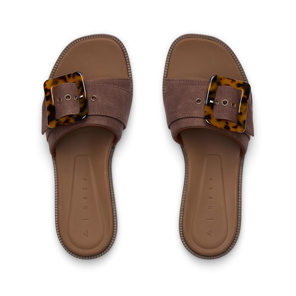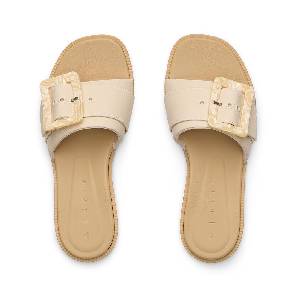 Reef Sunny Emma Women's Flip Flop SandalsExperience ultimate comfort and durability with the Reef Sunny Emma Women's Flip Flop Sandals, designed for versatile wear from casual outings to watery adventures. These lightweight sandals boast water-friendly synthetic straps paired with a super soft padded jersey lining, ensuring your feet stay pampered all day. Featuring Reef's signature high-energy rebound cushion footbed with anatomical contours, they provide moderate cushioning and medium arch support for optimal comfort. The durable rubber sponge outsole adds reliability, making them perfect for active lifestyles while fitting most foot widths with a standard design. Features of Reef Sunny Emma Women's Flip Flop Sandals