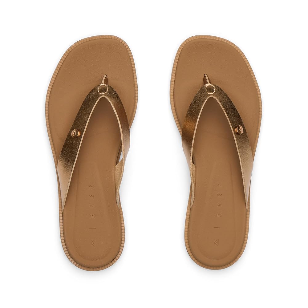 Shop Reef Sunny Farrah Women's Sandals for ultimate comfort and durability. These lightweight flip flops feature water-friendly synthetic straps, cushioned rebound footbed, and soft jersey lining, perfect for playground to pool adventures.