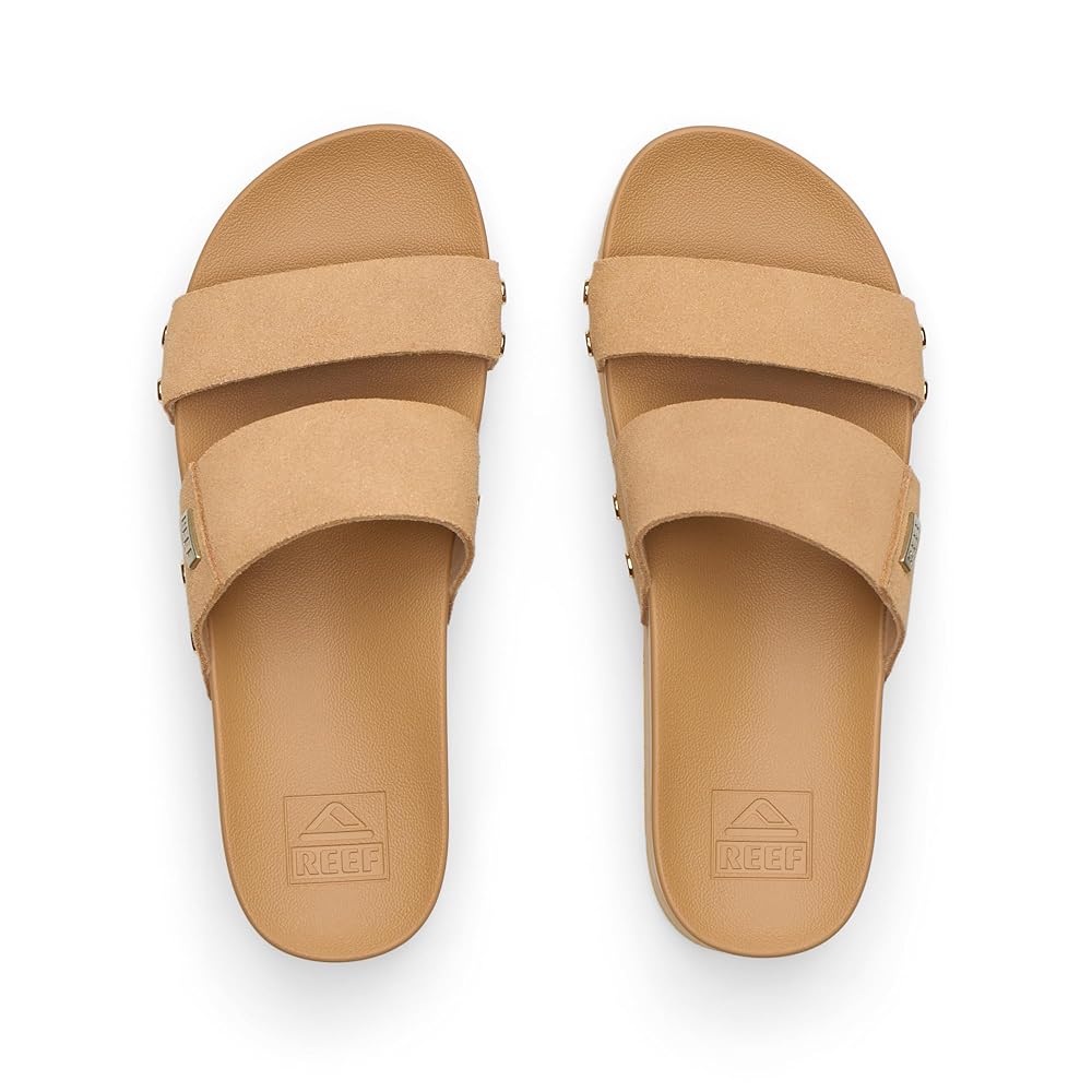 Reef Vista Higher Cleo Women's SandalsExperience ultimate comfort and durability with the Reef Vista Higher Cleo Women's Sandals, designed for everything from playground adventures to relaxing by the pool. These lightweight flip flops boast water-friendly synthetic straps, a signature high-energy rebound cushion footbed with anatomical contours, and a super soft padded jersey lining to keep your feet pampered all day long. Ideal for women on the go, they offer medium arch support and moderate cushioning in a standard fit that suits most foot widths. Features of the Reef Vista Higher Cleo Women's Sandals
