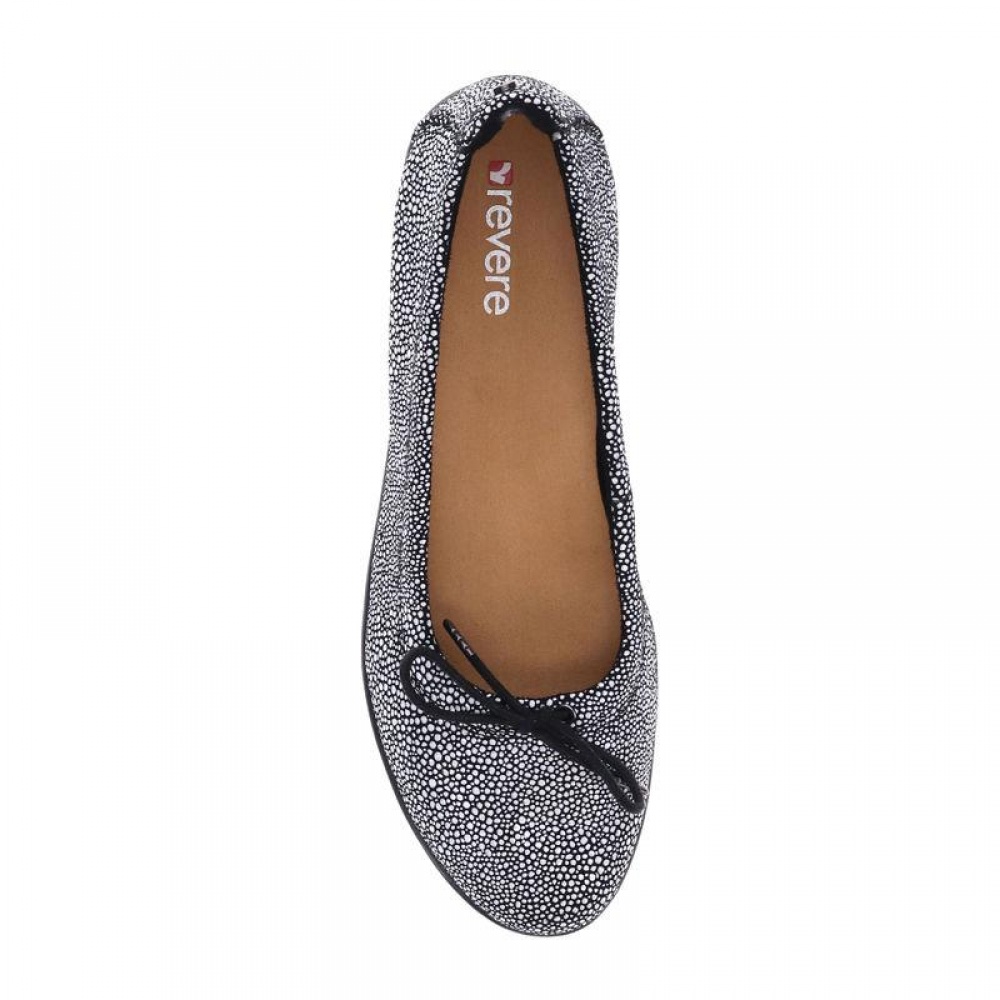 Marrakesh blends a subtly sporty, fully functional silhouette with undeniably feminine features. Sleek uppers made from supple and textured leathers complement a delicate bow detail that adorns the vamp of this gorgeous demi-wedge. Topline features a hint of stretch and adjustability. Features and Benefits of Revere Marrakesh - Women\'s