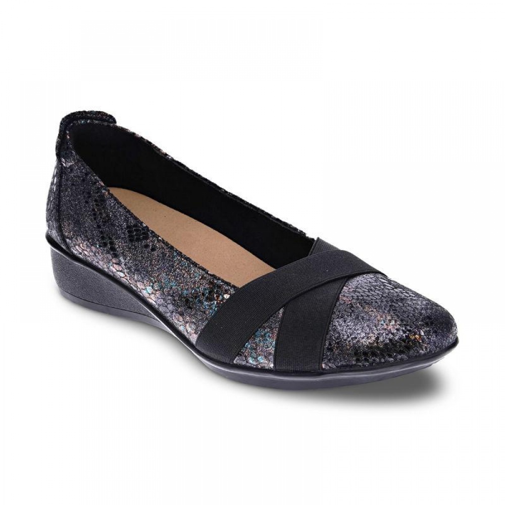 A workwear staple she won’t want to take off, the Seoul demi-wedge takes the delicate, feminine silhouette of a ballet flat and adds a modest hint of height. Criss-crossing elastic straps across the vamp add flexibility, hugging the foot with every step. Features and Benefits of Revere Seoul Slip On Wedge - Women\'s
