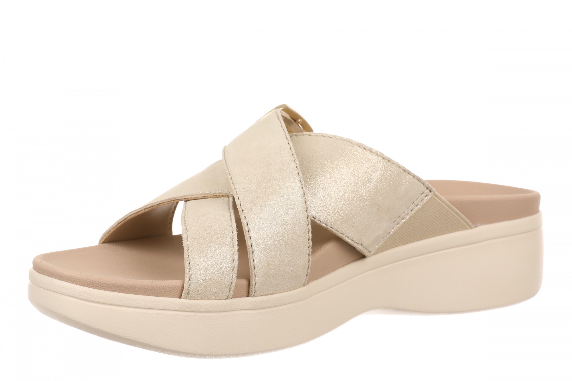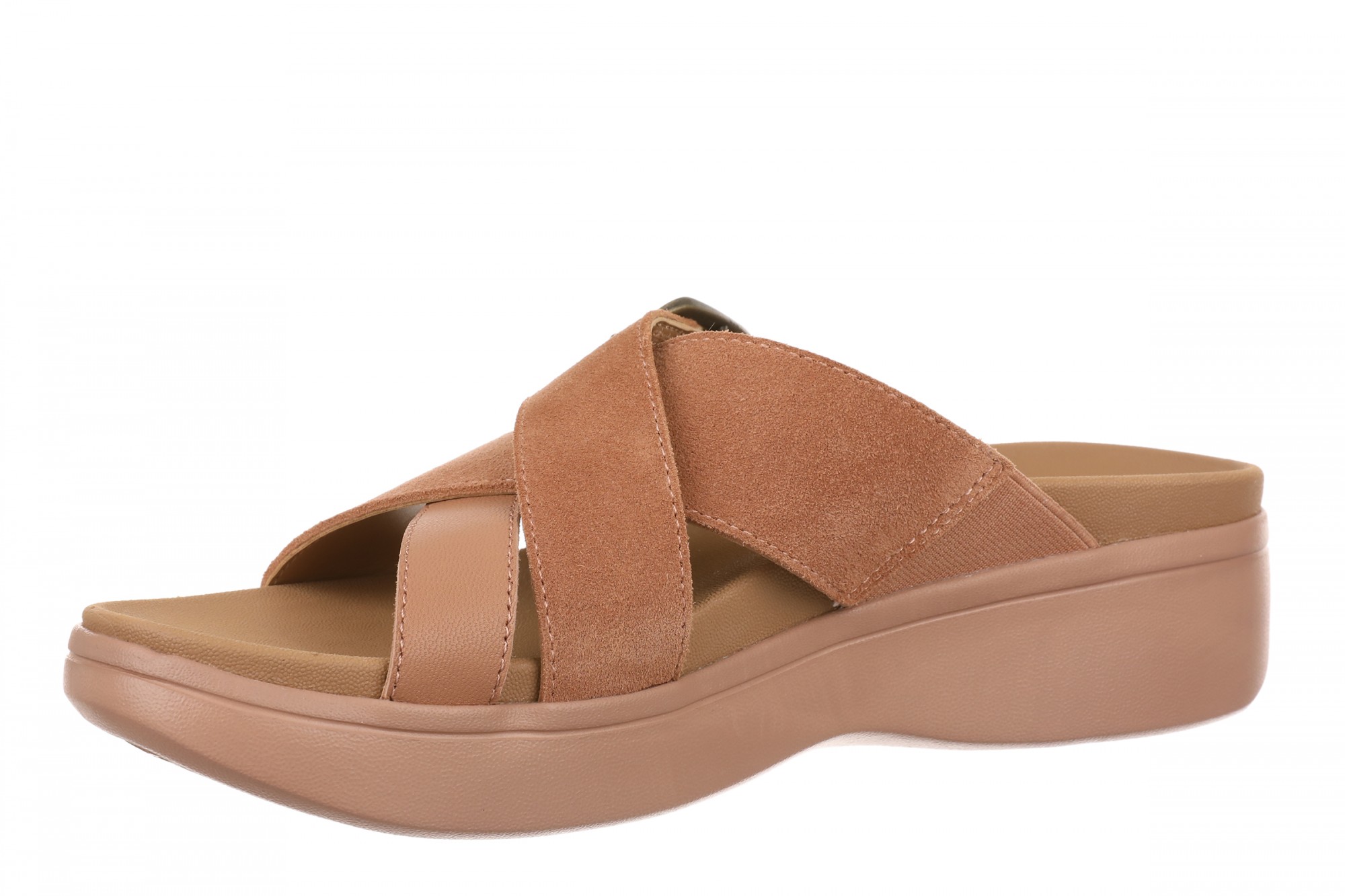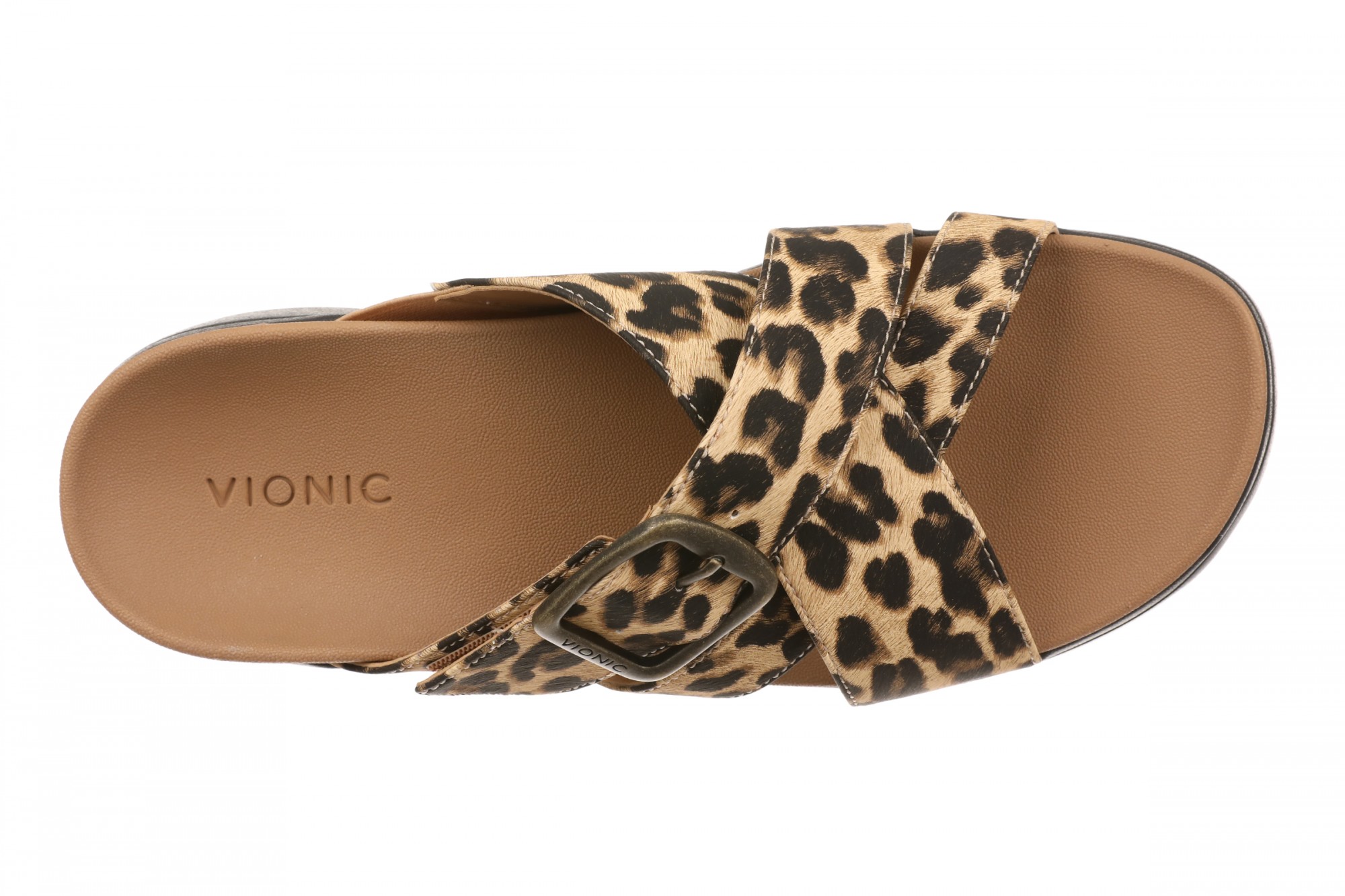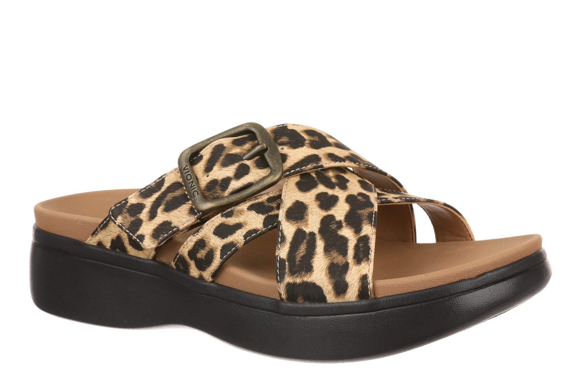 Step into effortless comfort and style with the Vionic Starla Slide Sandal, a modern update built on the same trusted construction as the iconic High Tide and fan-favorite Sabrina. This easy slip-on silhouette features wide, supportive straps with an adjustable buckle for a secure, personalized fit. Designed with Vionic’s signature Vio Motion Technology, Starla delivers the stability, cushioning, and arch support you need for all-day wear—whether you're running errands or heading out for a casual day in the sun. With a range of upper materials—from metallic leather and soft suede to bold prints like leopard—Starla offers versatile style options to complement any warm-weather wardrobe. Features of the Vionic Starla Women's Orthotic Slide Sandal - Adjustable Buckle Comfort Platform: